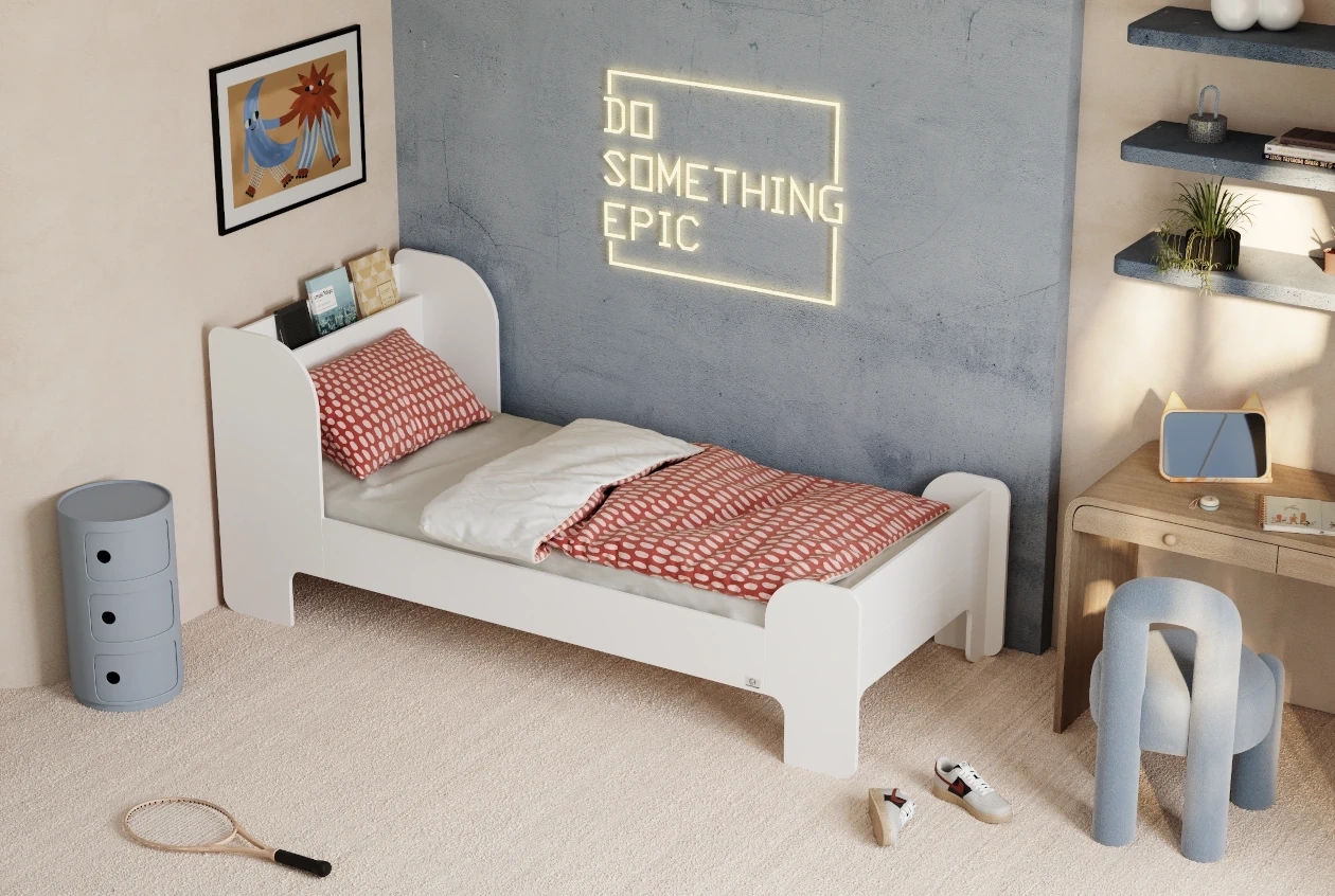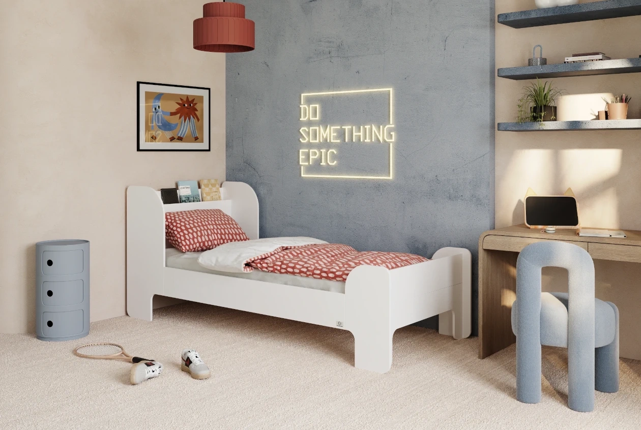 Masz dość nudnych mebli? Nasze łóżko to połączenie solidnej sklejki sosnowej z młodzieżowym vibe’em. Gładkie, zaokrąglone krawędzie chronią przed otarciami, a stonowana estetyka wpasuje się w każdy nastoletni pokój.