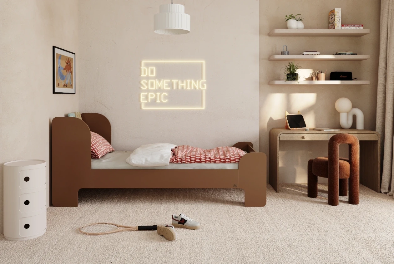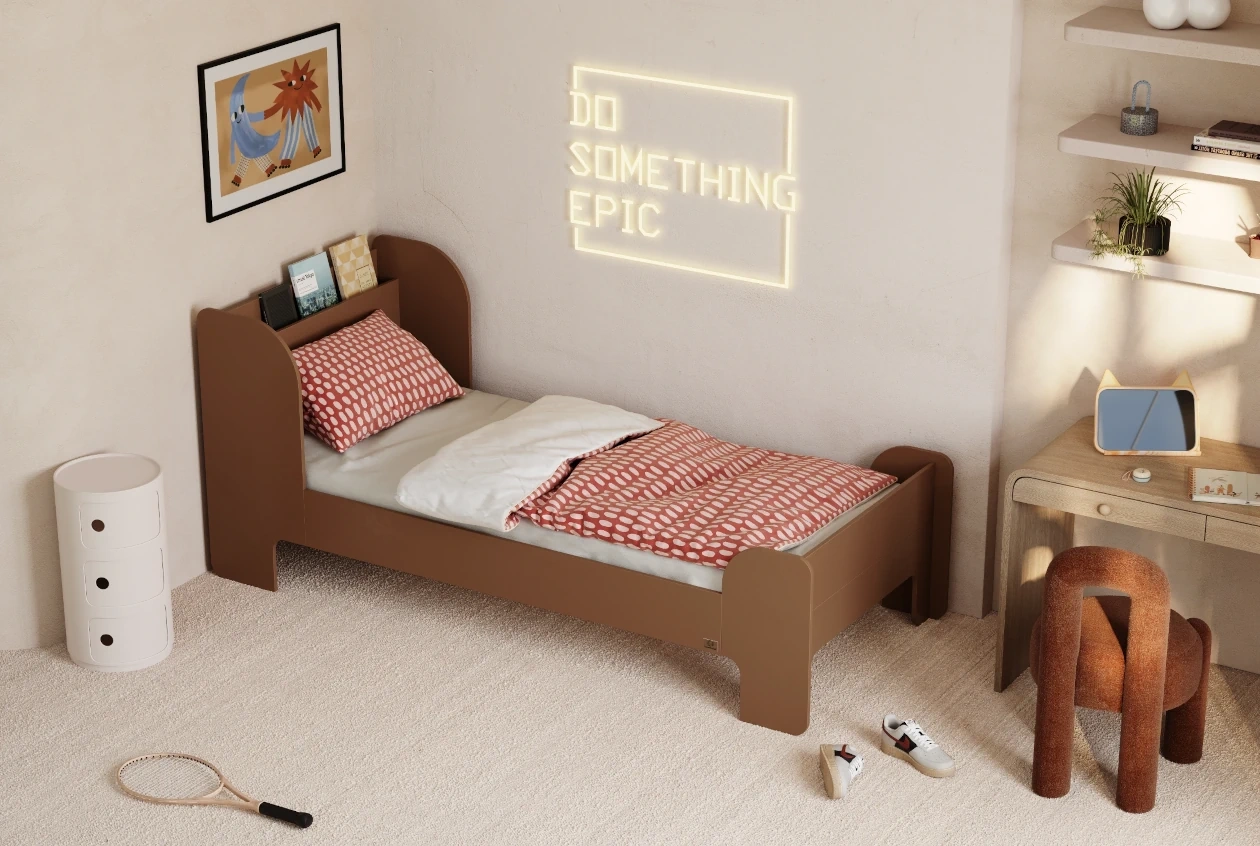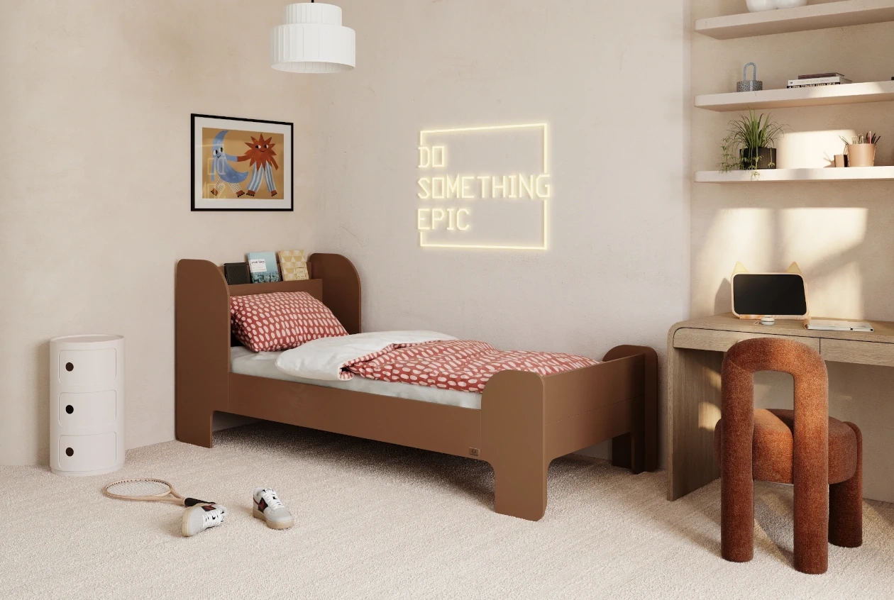 Masz dość nudnych mebli? Nasze łóżko to połączenie solidnej sklejki sosnowej z młodzieżowym vibe’em. Gładkie, zaokrąglone krawędzie chronią przed otarciami, a stonowana estetyka wpasuje się w każdy nastoletni pokój.