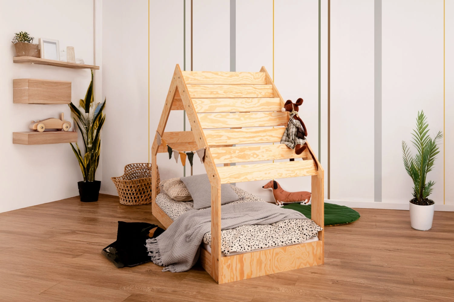 Łóżko domek dla dziecka z niską konstrukcją i stelażem MOON G Montessori Drewniane