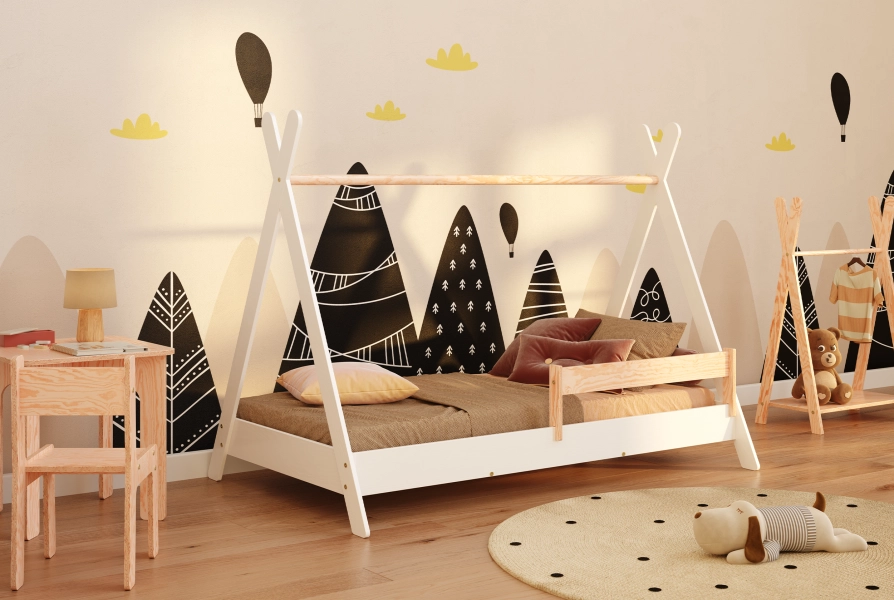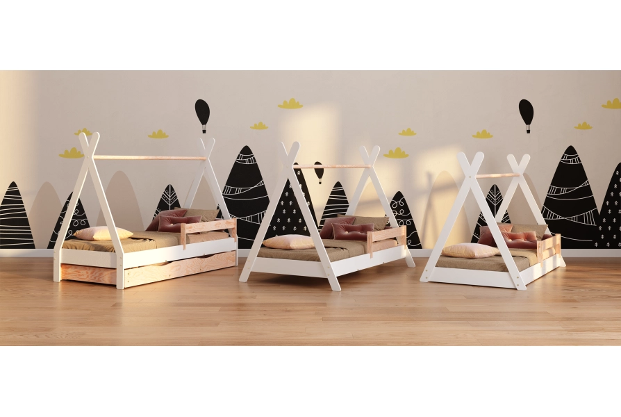 TIPI to więcej niż łóżko – to przestrzeń pełna wyobraźni, która wprowadzi do pokoju Twojego dziecka radość i funkcjonalność. Stwórz wyjątkowe miejsce do snu i zabawy!