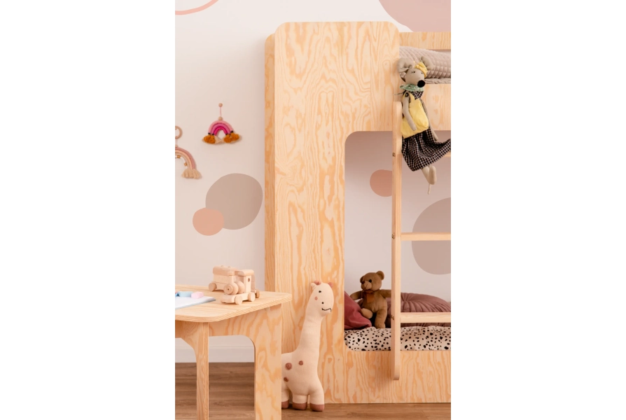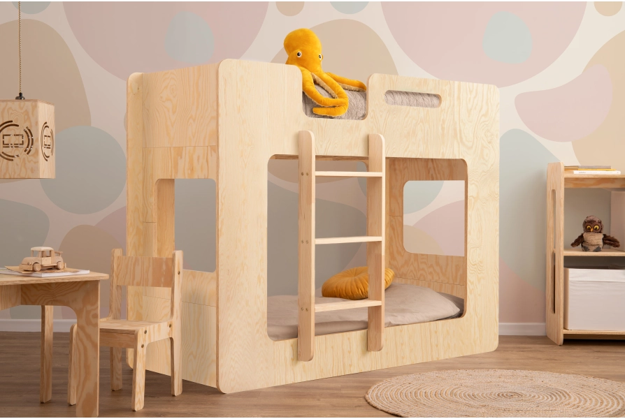 Łóżko piętrowe dla dzieci ze stelażem MIMI Montessori Drewniane