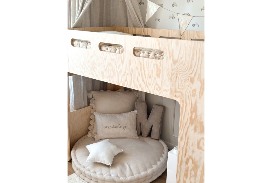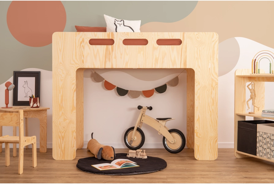 Łóżko piętrowe pojedyncze dla dziecka z antresolą MIMI A Montessori Drewniane