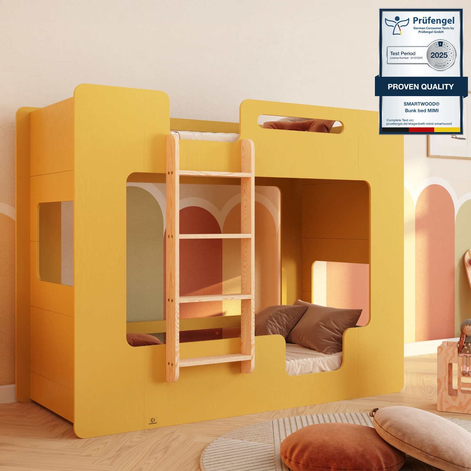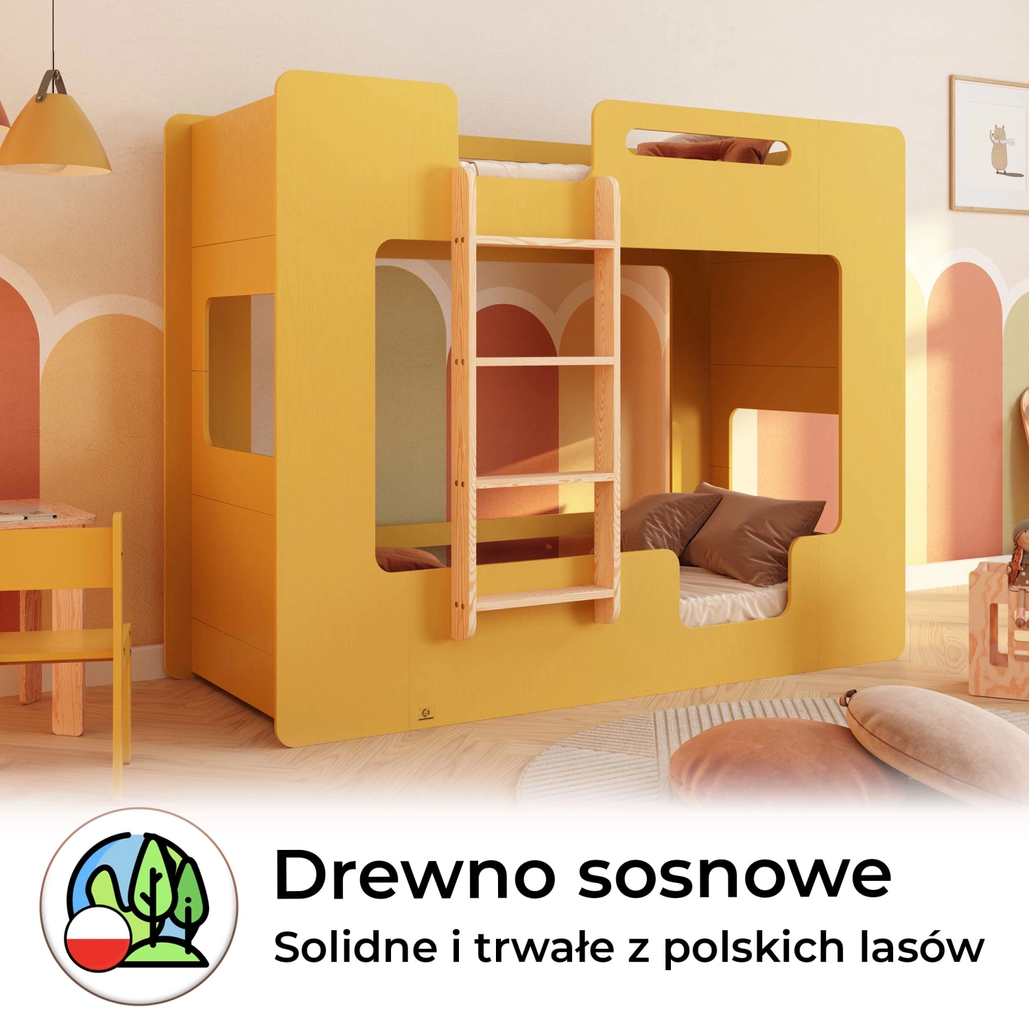MIMI B to piętrowe łóżko, które łączy funkcjonalność z troską o bezpieczeństwo najmłodszych. Stwórz przyjazne i praktyczne miejsce do snu i zabawy dla swoich dzieci!