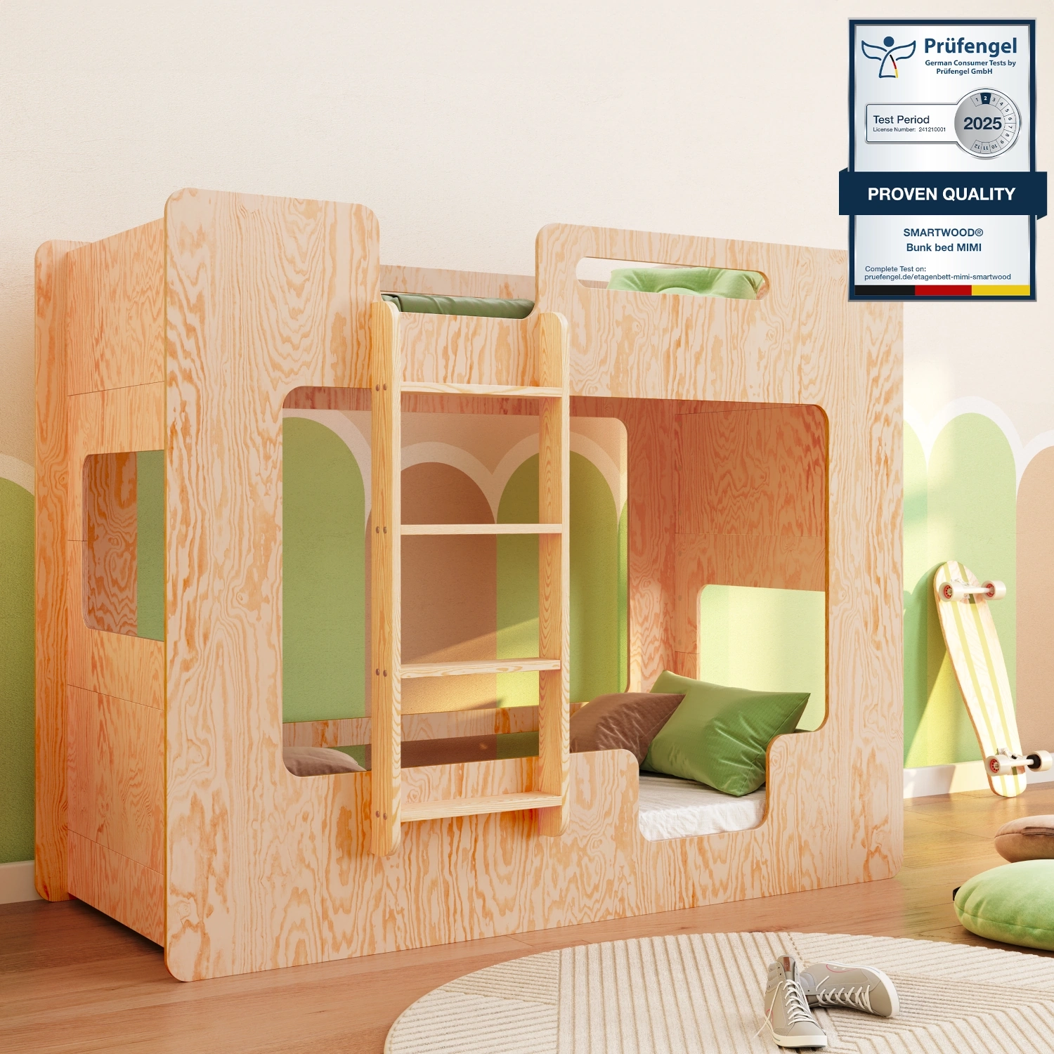 MIMI B to piętrowe łóżko, które łączy funkcjonalność z troską o bezpieczeństwo najmłodszych. Stwórz przyjazne i praktyczne miejsce do snu i zabawy dla swoich dzieci!