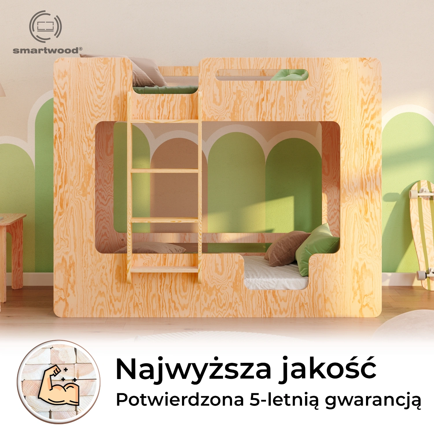 ✔ Bezpieczny design – zaokrąglone, gładkie krawędzie nadają łóżku elegancji, a jednocześnie eliminują ryzyko urazów, tworząc przyjazne środowisko dla najmłodszych.