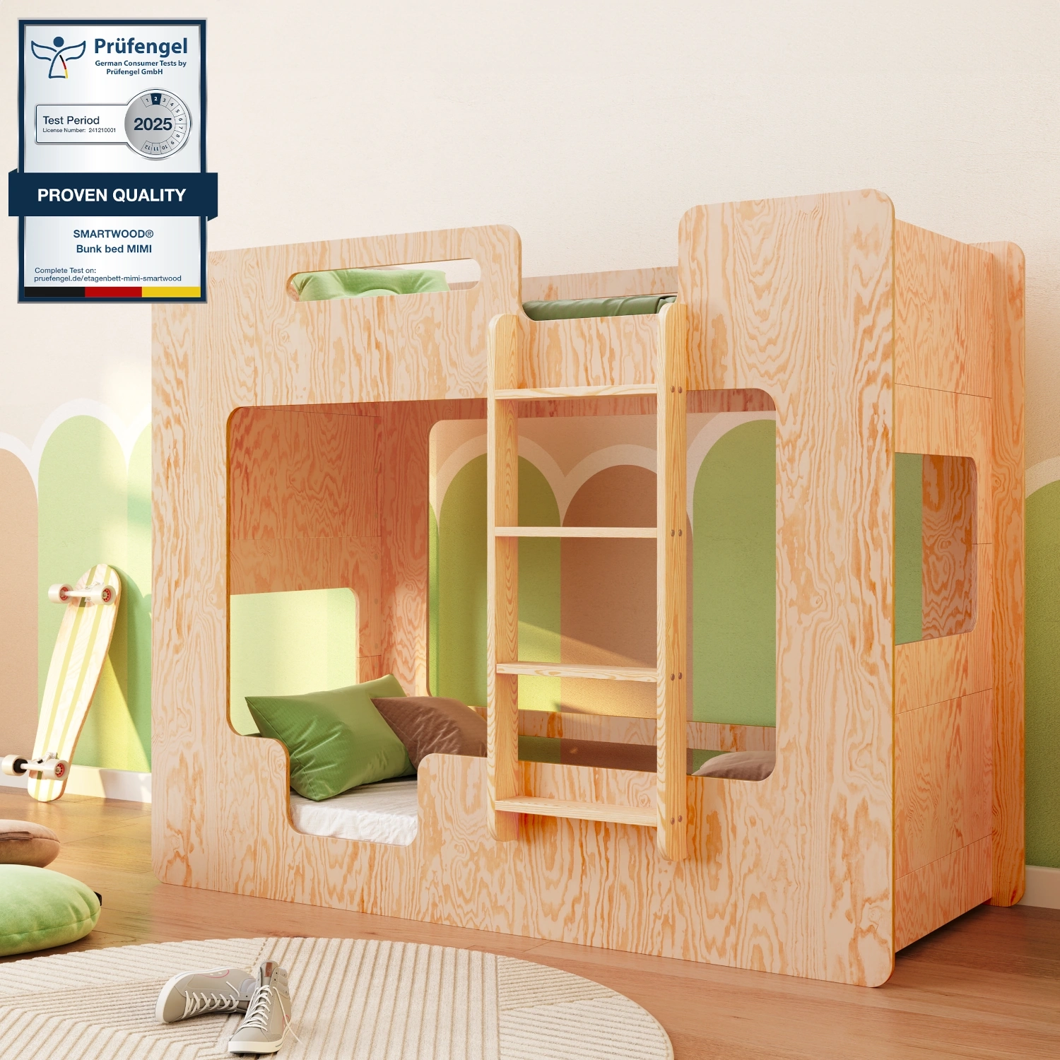 MIMI B to piętrowe łóżko, które łączy funkcjonalność z troską o bezpieczeństwo najmłodszych. Stwórz przyjazne i praktyczne miejsce do snu i zabawy dla swoich dzieci!