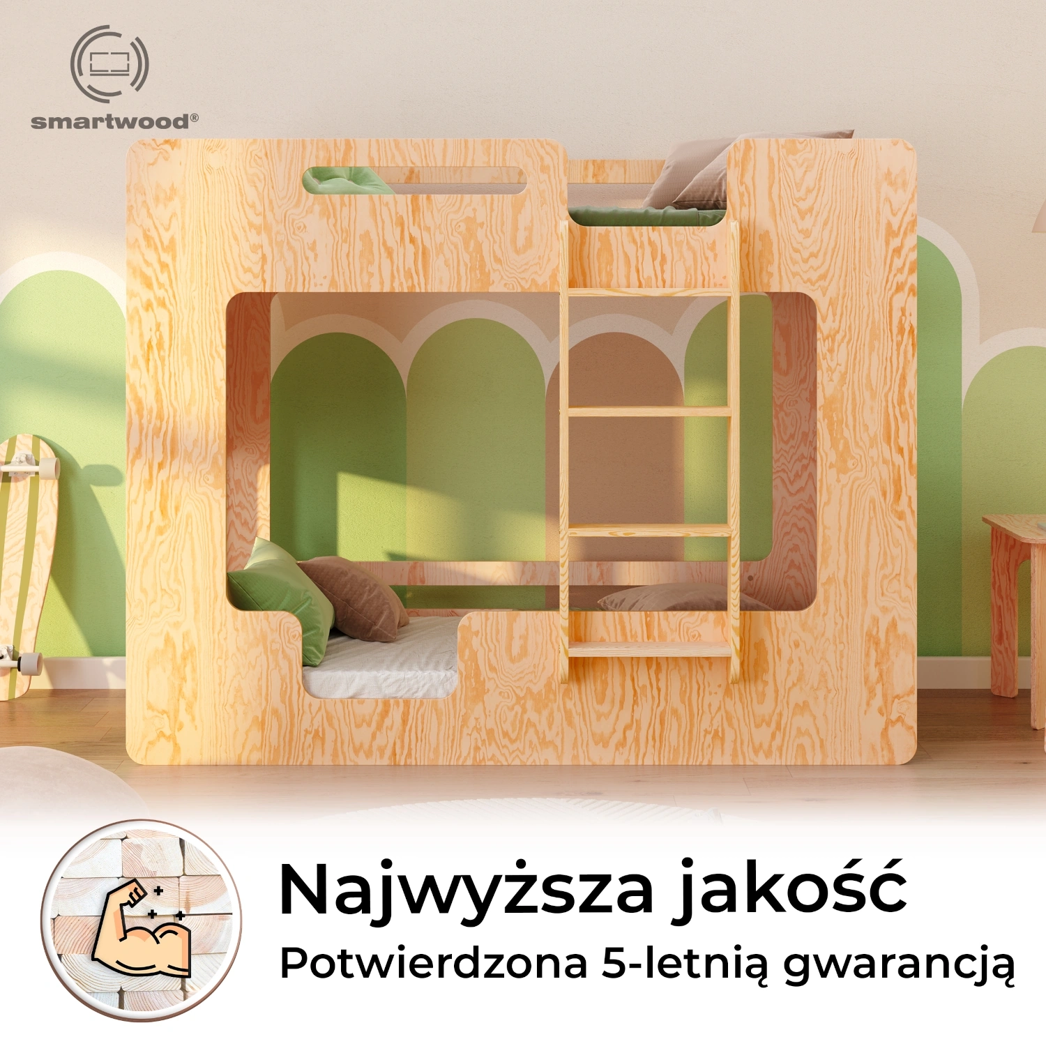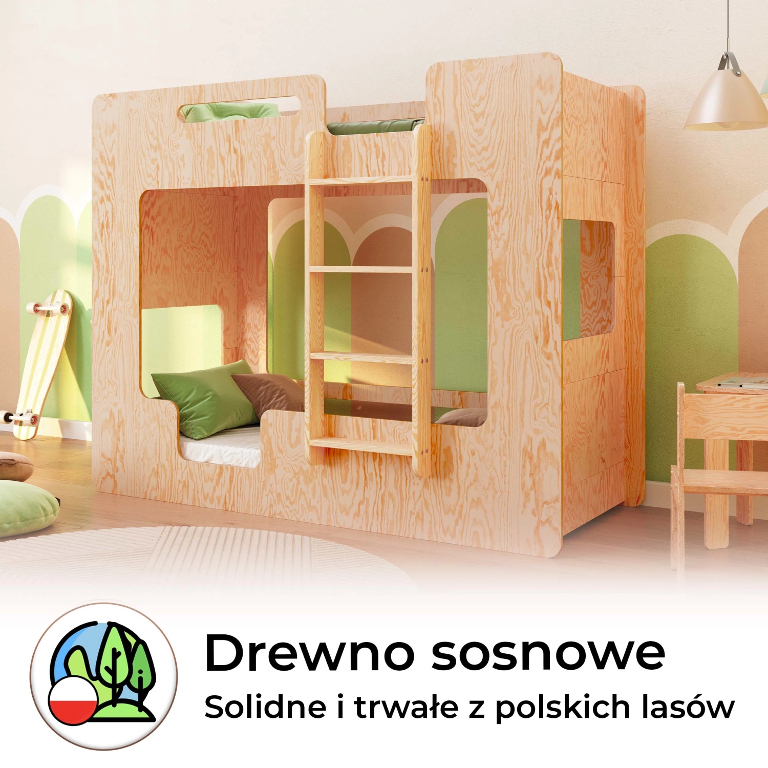 ✔ Bezpieczny design – zaokrąglone, gładkie krawędzie nadają łóżku elegancji, a jednocześnie eliminują ryzyko urazów, tworząc przyjazne środowisko dla najmłodszych.