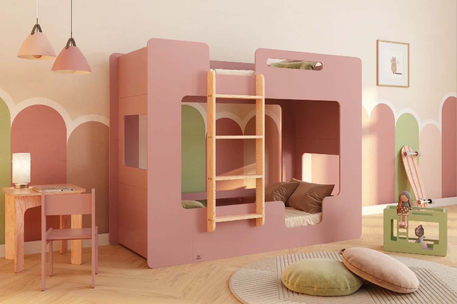 ✔ Podwójna ochrona – barierki na obu poziomach zapewniają poczucie bezpieczeństwa, zarówno na górnym, jak i dolnym łóżku, tworząc komfortową i przytulną przestrzeń do snu.
