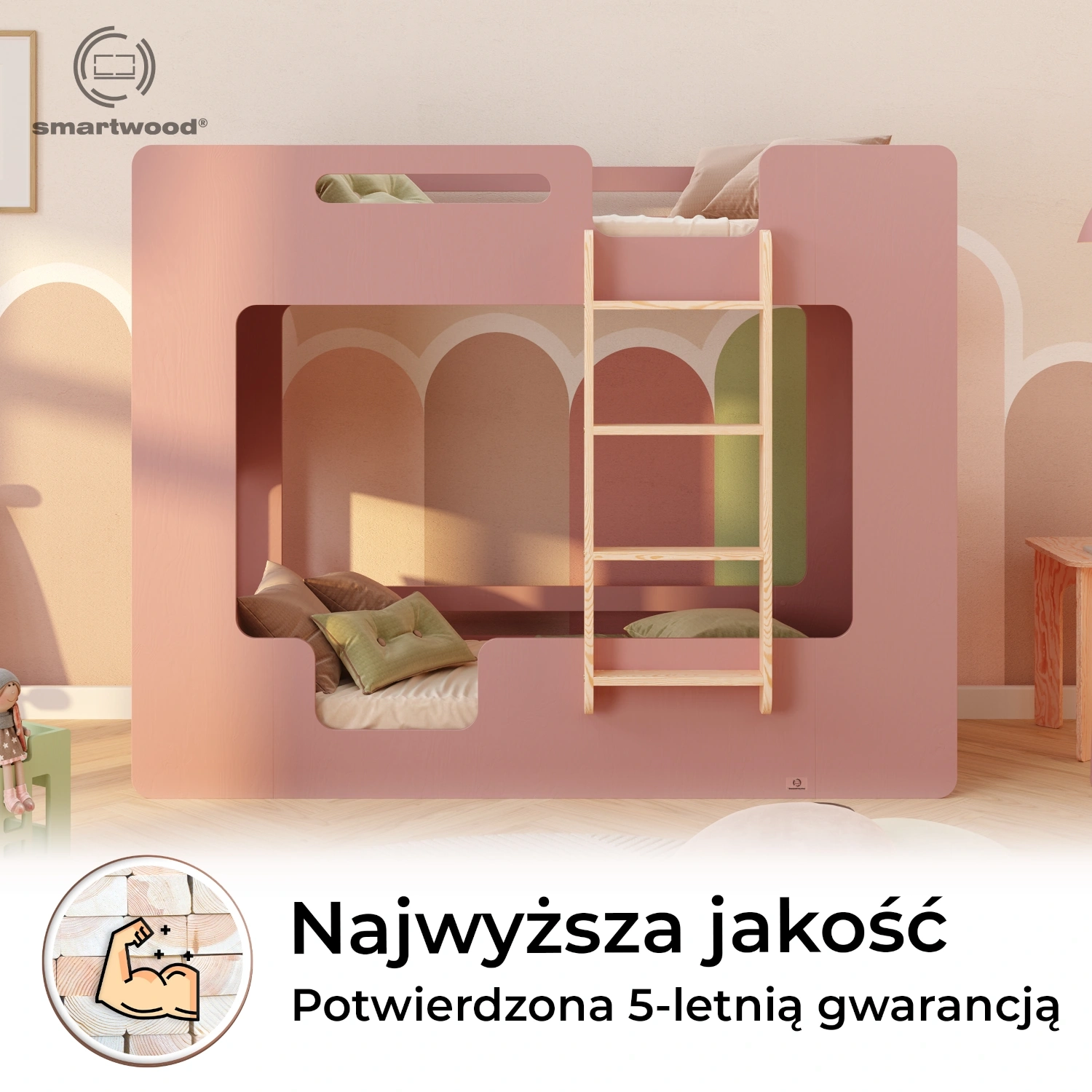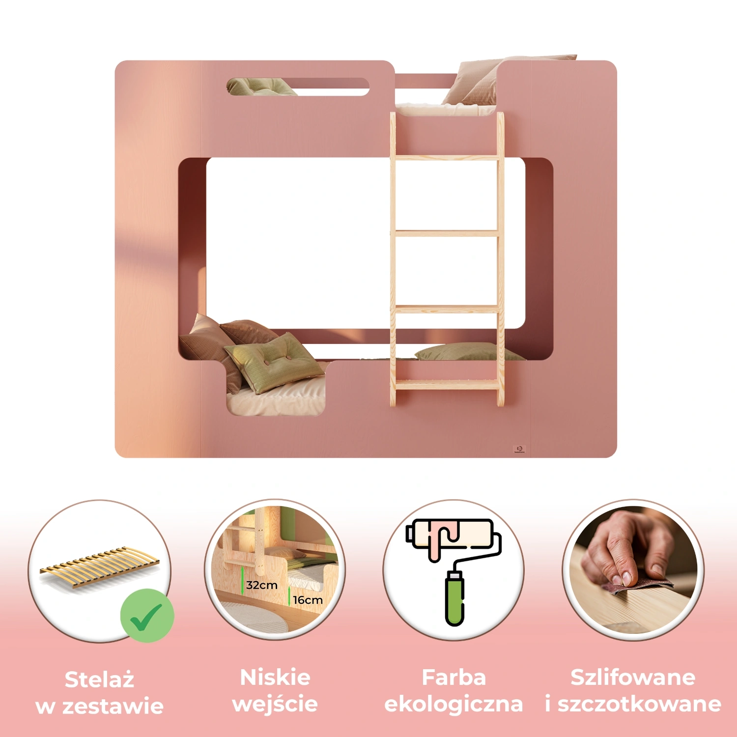 Łóżko piętrowe dla dzieci z barierkami i stelażem MIMI B Montessori Drewniane