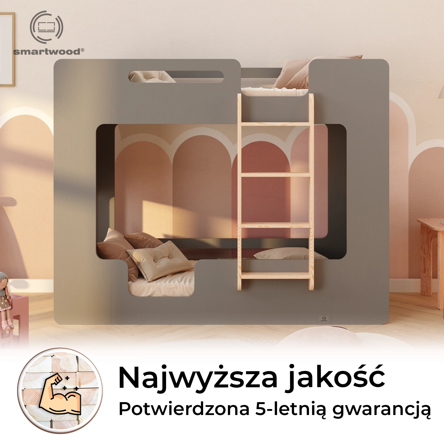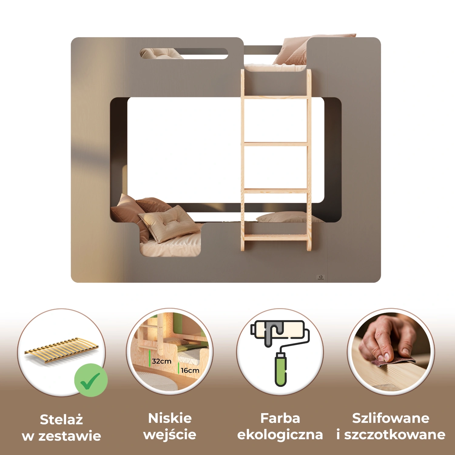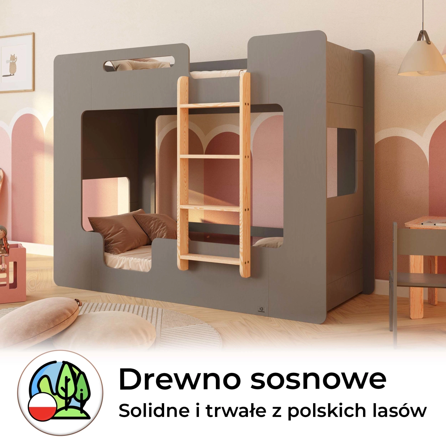 Łóżko piętrowe dla dzieci z barierkami i stelażem MIMI B Montessori Drewniane