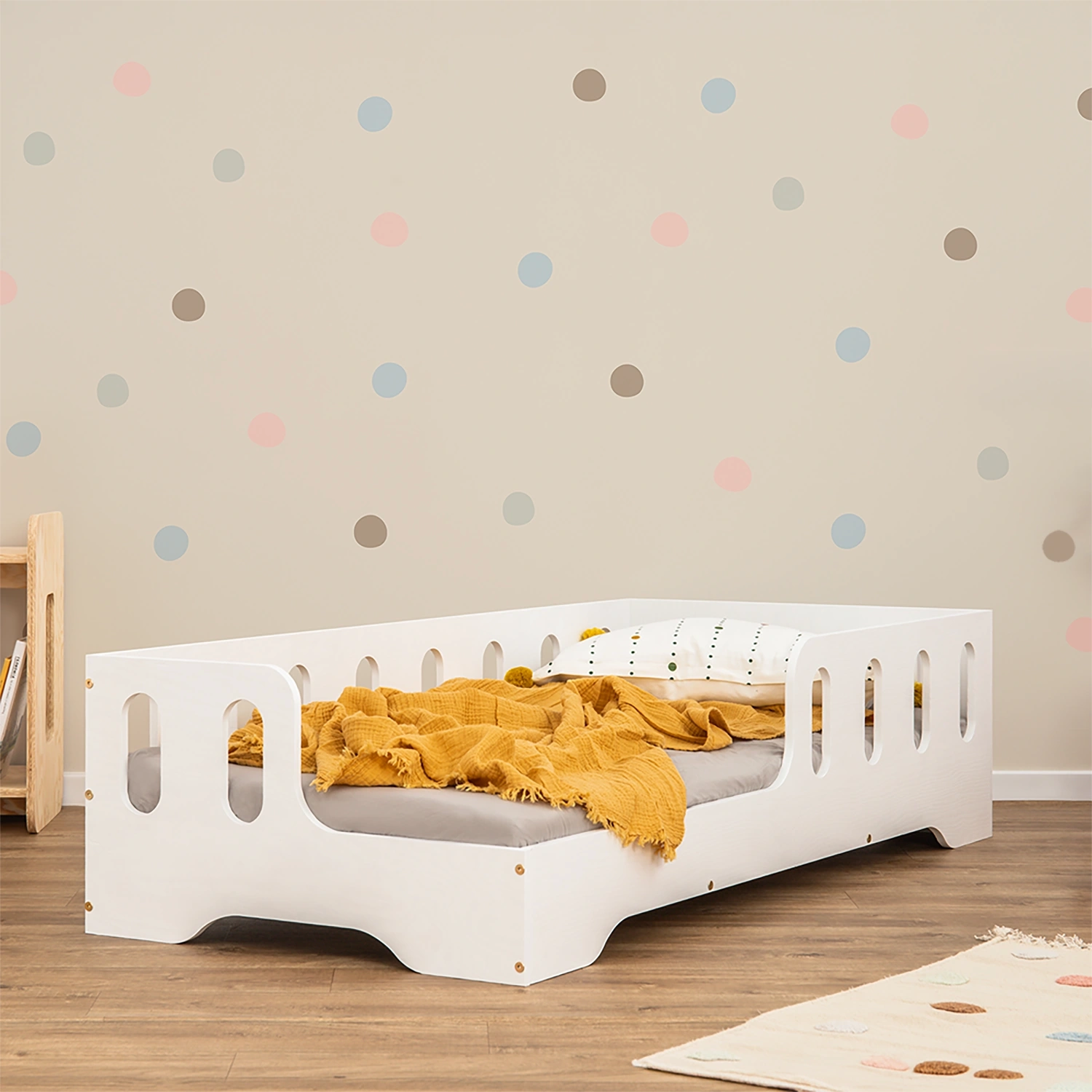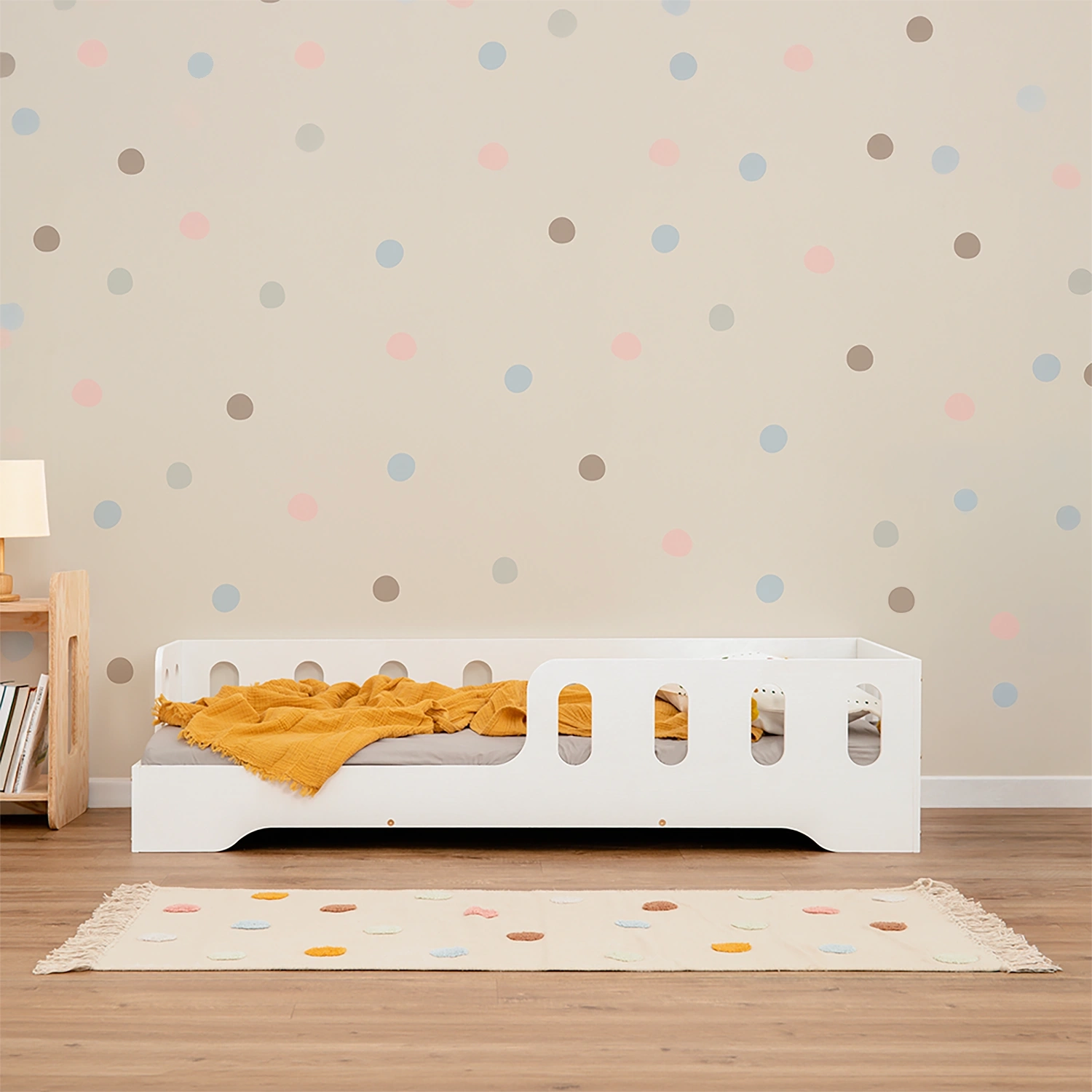 Łóżko pojedyncze dla dzieci z barierką i stelażem TILA 1 Montessori Drewniane