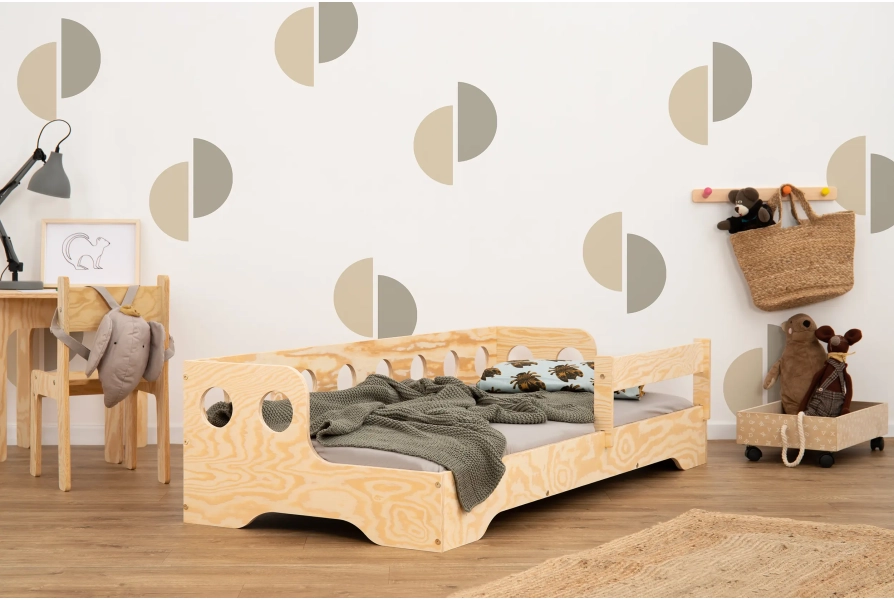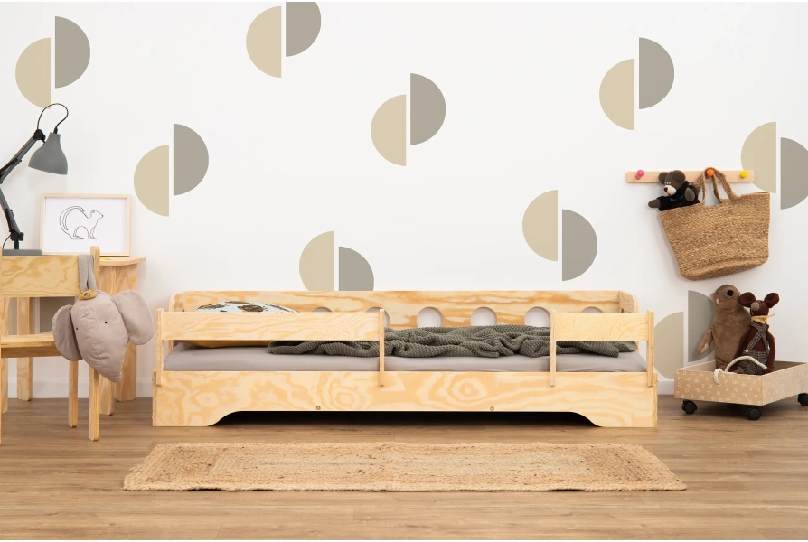 Łóżko pojedyncze dla dzieci z barierką i stelażem sofa TILA 5S Montessori Drewniane