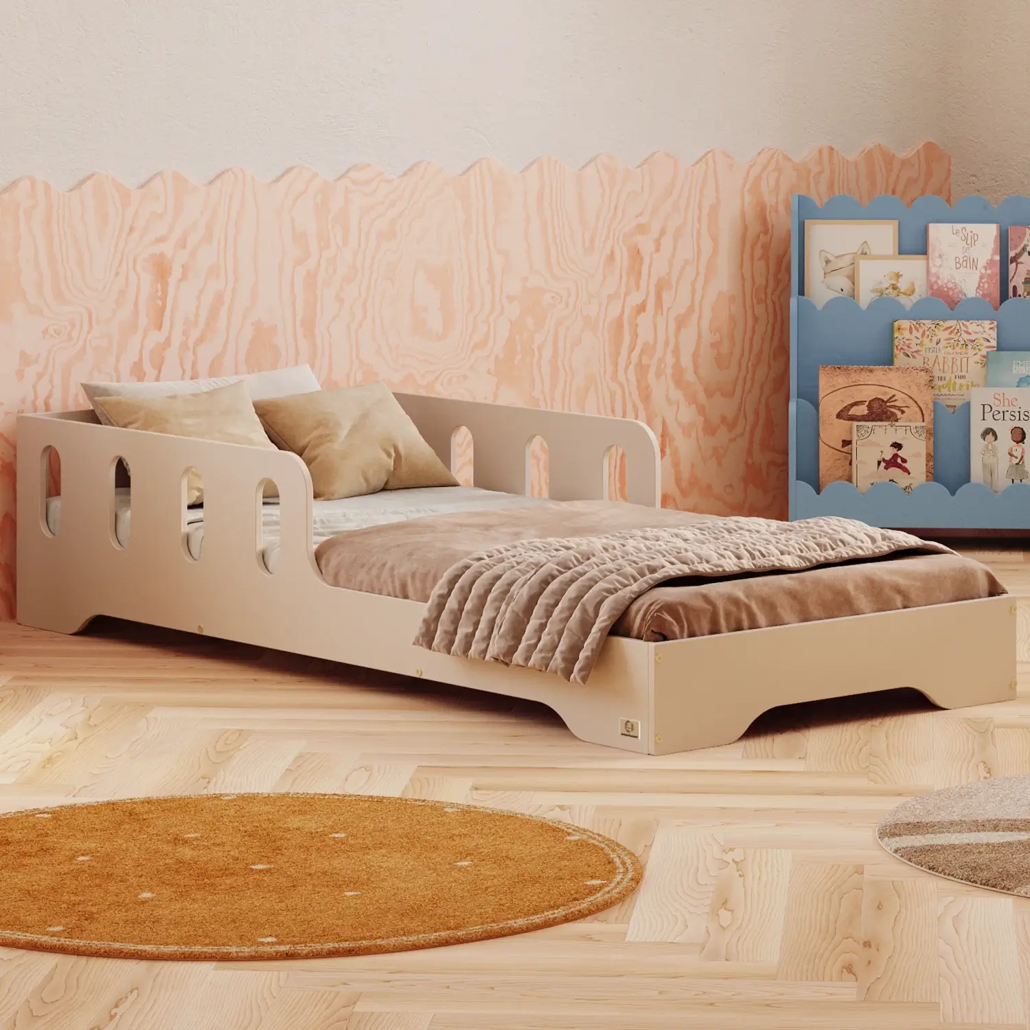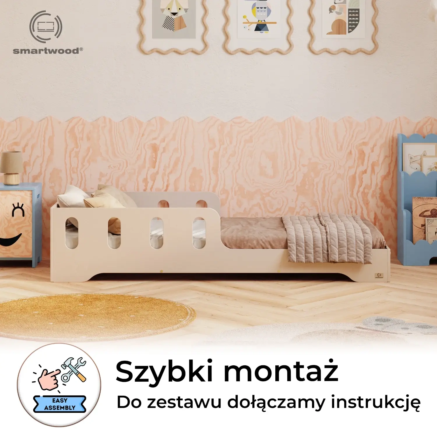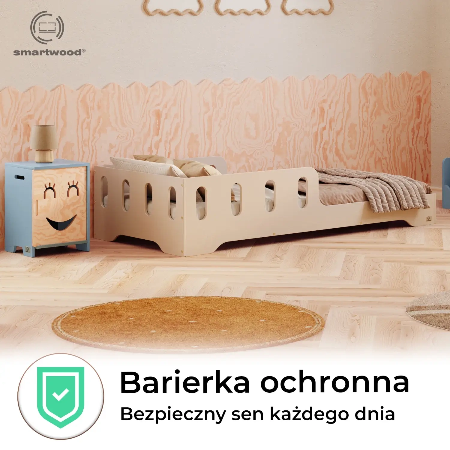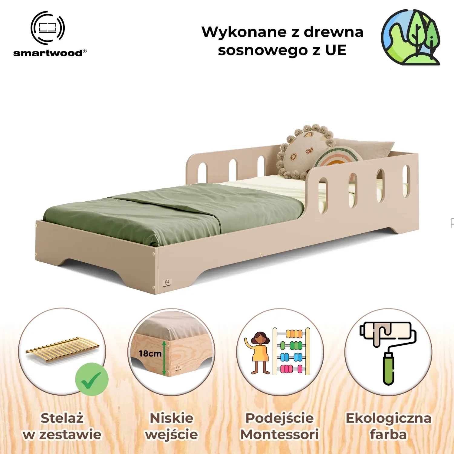 Łóżko pojedyncze dla dzieci z barierką i stelażem TILA 6 Montessori Drewniane