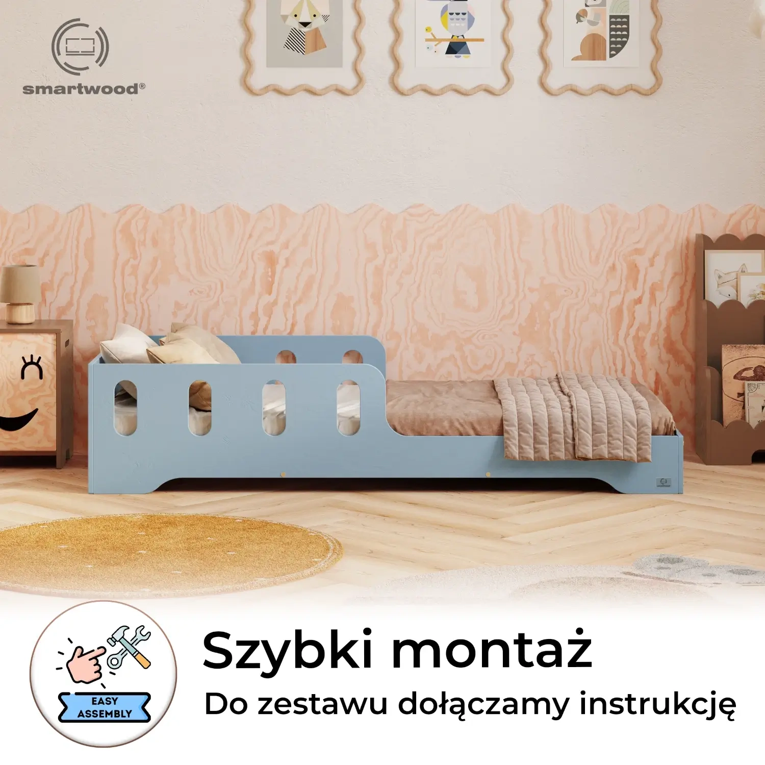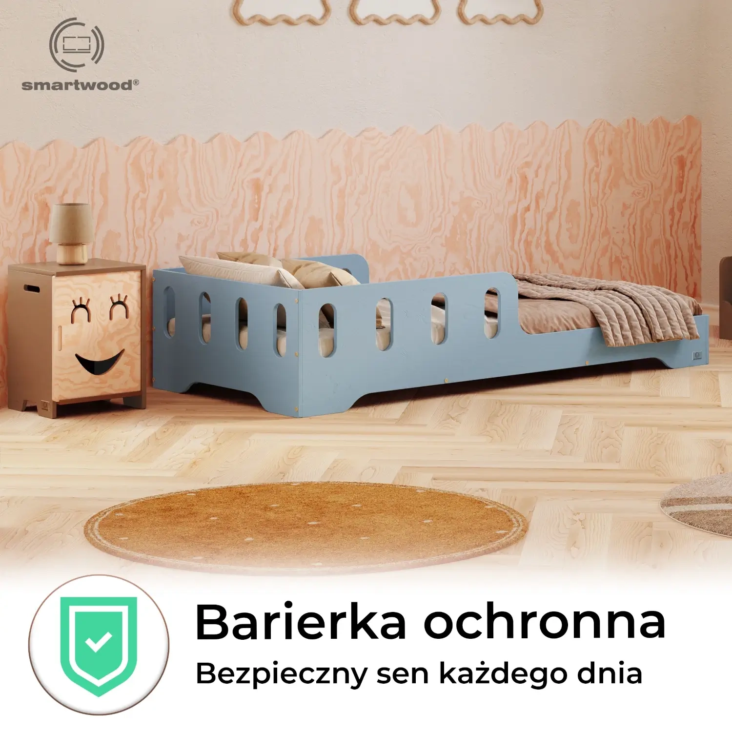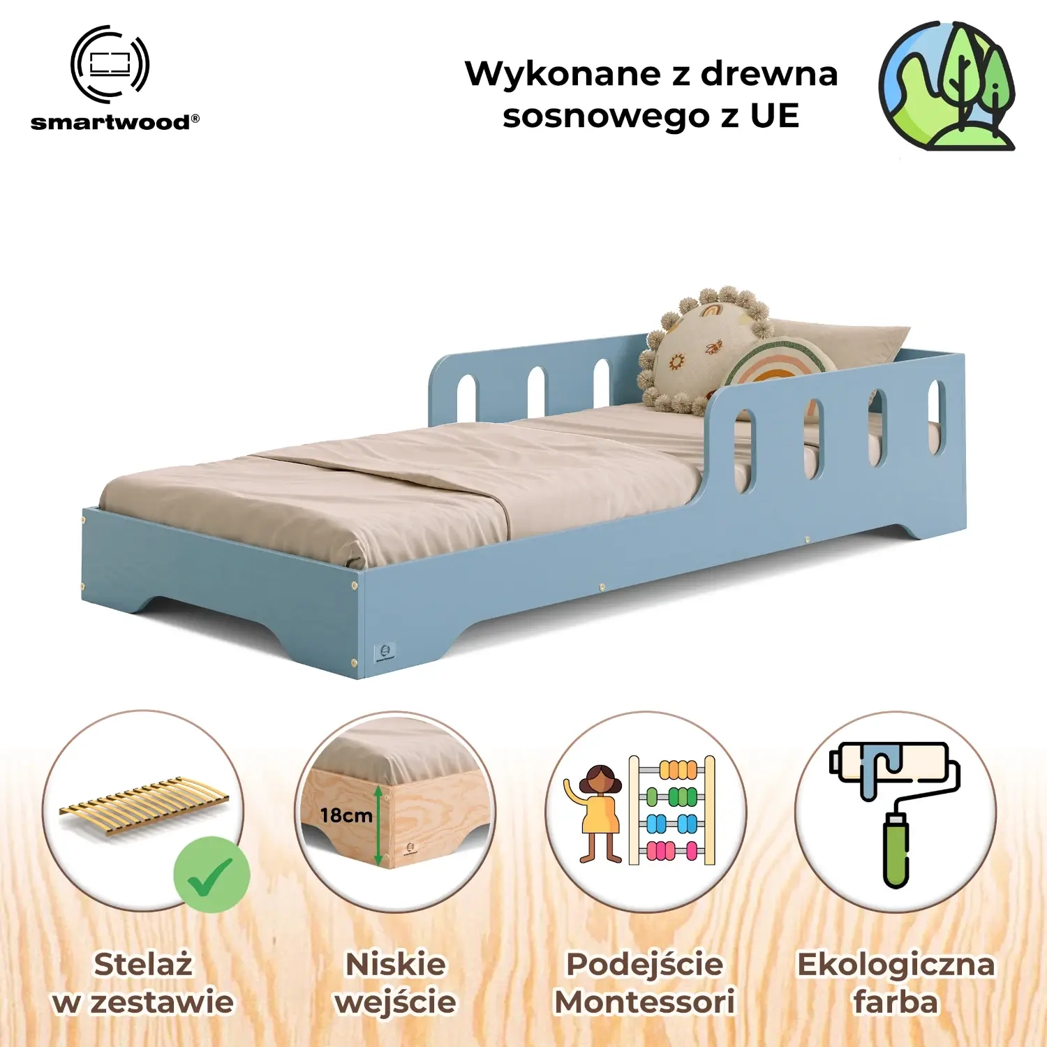 Łóżko pojedyncze dla dzieci z barierką i stelażem TILA 6 Montessori Drewniane