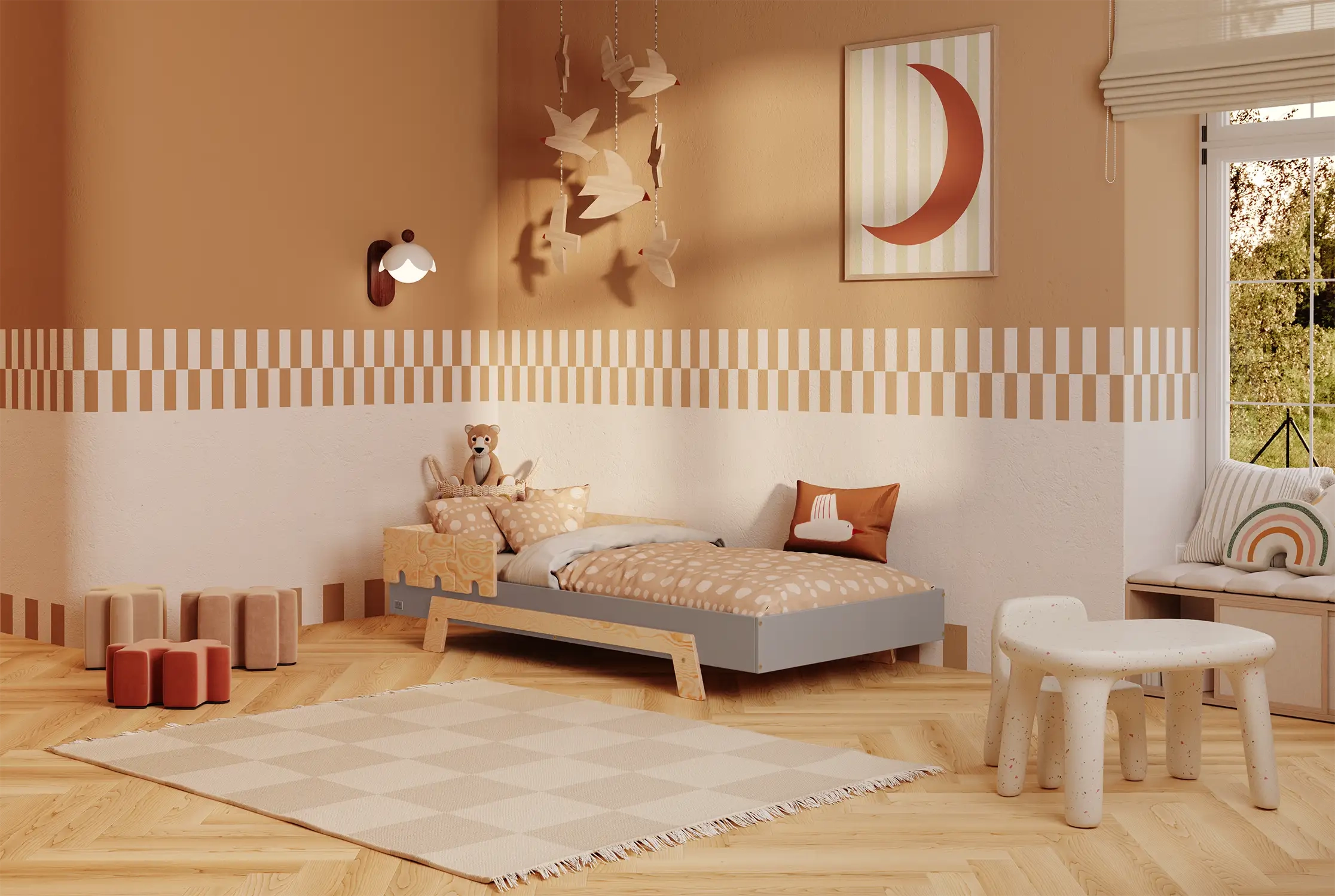 Świetna baza do stworzenia minimalistycznego kącika do spania lub strefy relaksu. Niska konstrukcja nadal sprzyja bezpieczeństwu, ale daje pełną swobodę ruchu.
