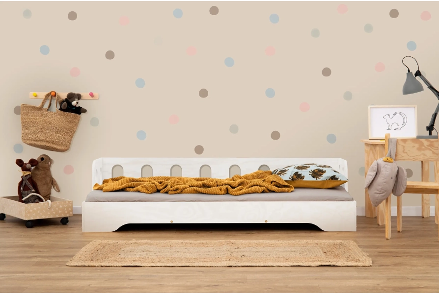 Otwarte boki łóżka zapewniają nie tylko swobodę ruchu, ale także możliwość przekształcenia go w przytulną sofę. To rozwiązanie doskonale wpisuje się w aranżację każdego pokoju dziecięcego, oferując elastyczność i dodatkową przestrzeń do zabawy lub relaksu.