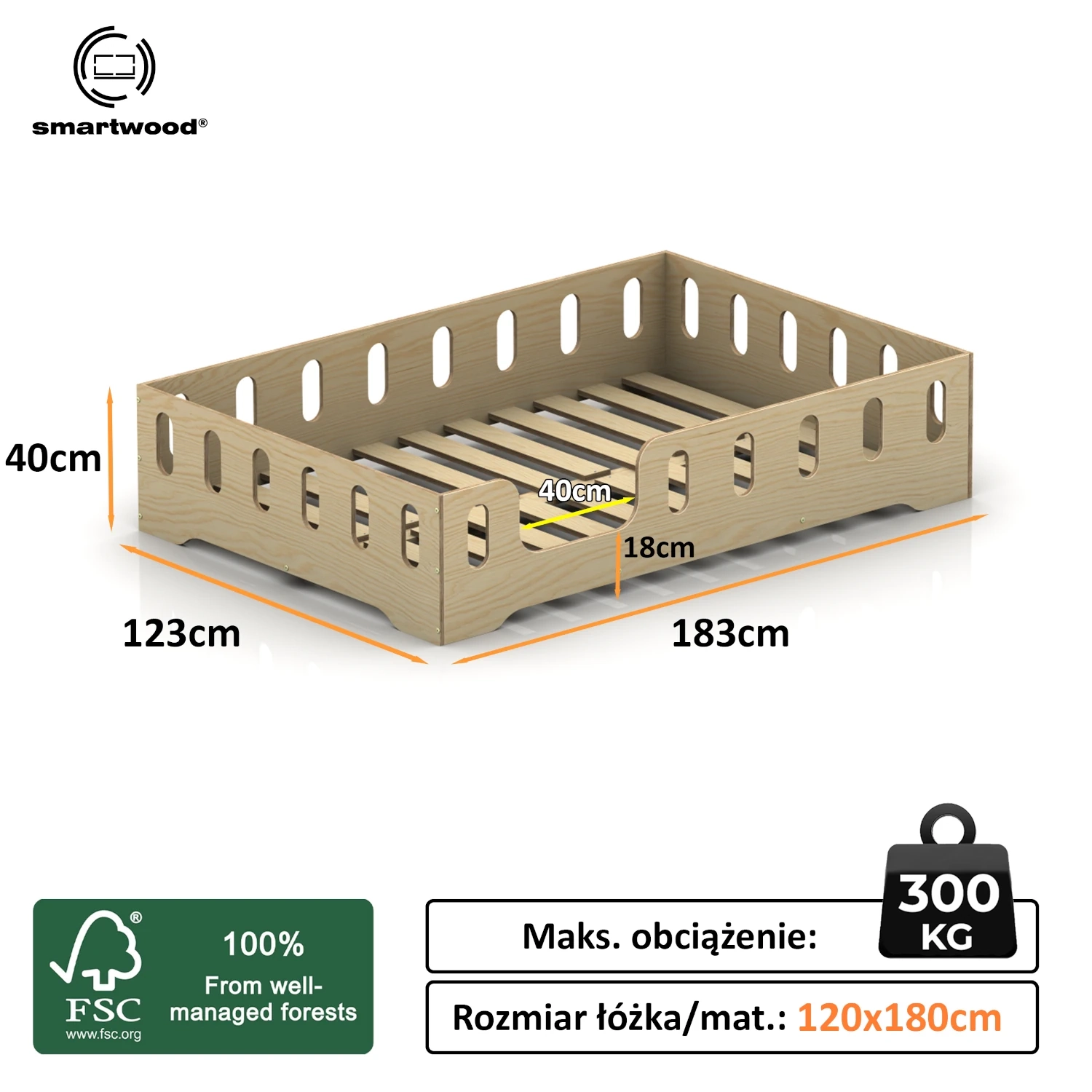 Materiał wykorzystywany do produkcji naszych mebli to sklejka sosnowa o grubości 15 mm. Jest to sklejka o klasie 1, co świadczy o wysokiej jakości tego materiału. Naturalne drewno powinno przemawiać do Was klientów ceniących ekologię. Jedną z istotnych cech materiału jest pozyskiwanie go z lasów objętych certyfikatem FSC. Certyfikat potwierdza, że drewno pochodzi z zrównoważonych źródeł, co wpisuje się w troskę o ochronę środowiska.