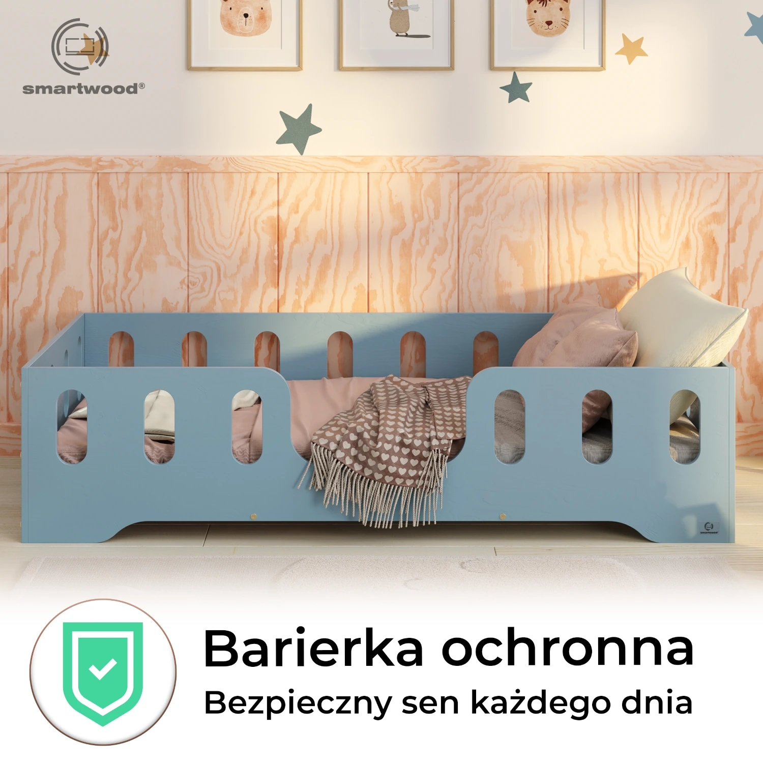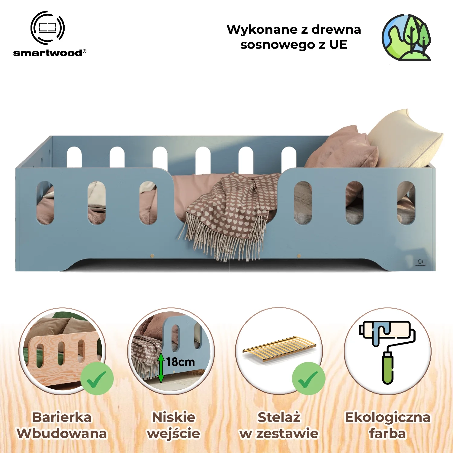 Łóżko pojedyncze dla dzieci z barierką i stelażem TILA 2 Montessori Drewniane