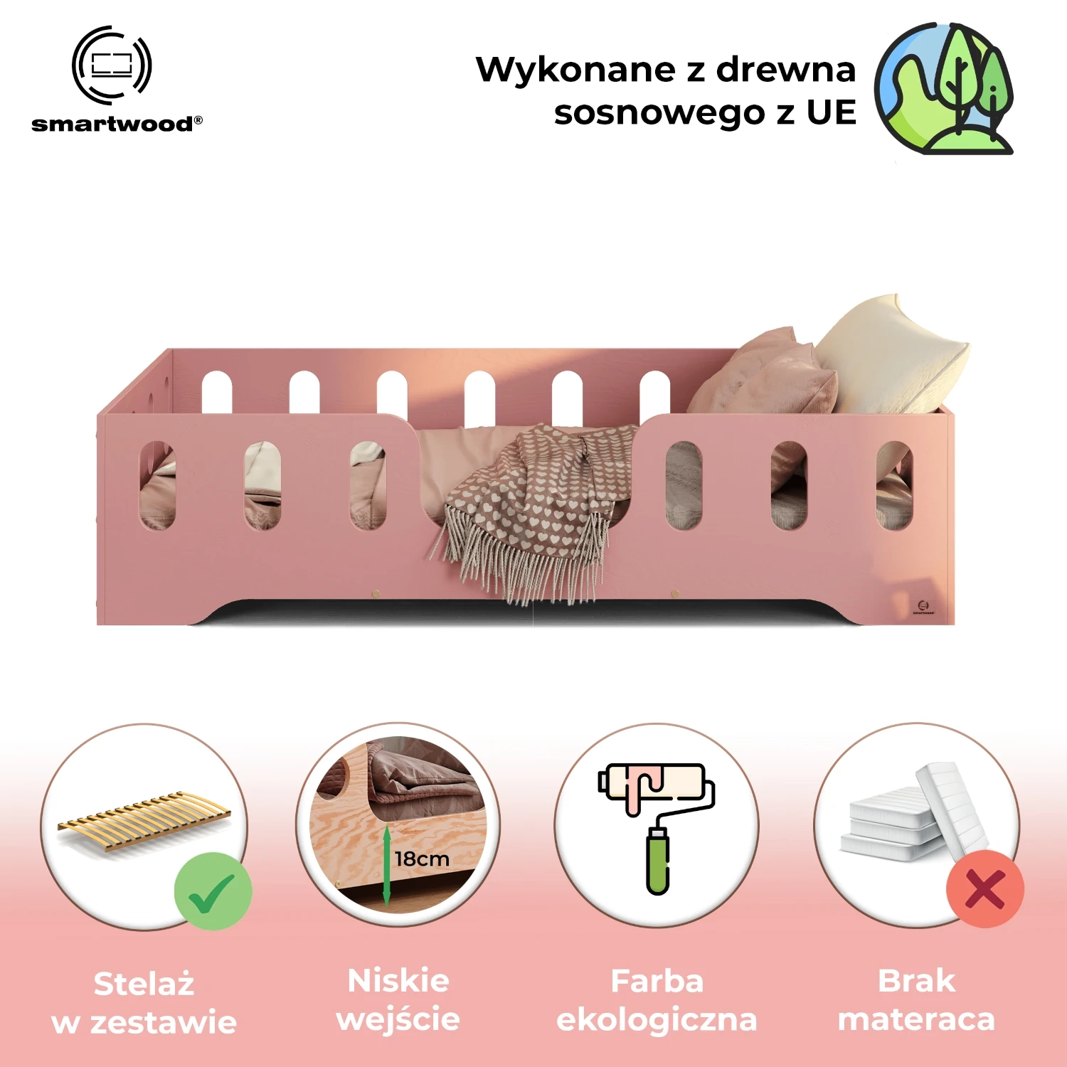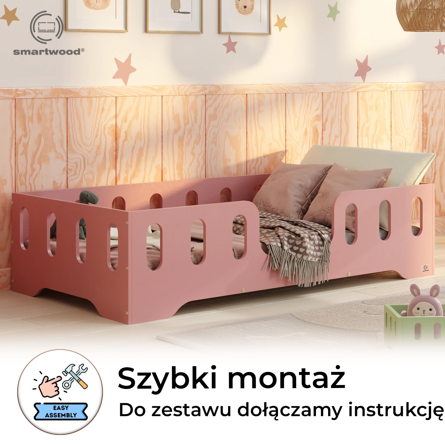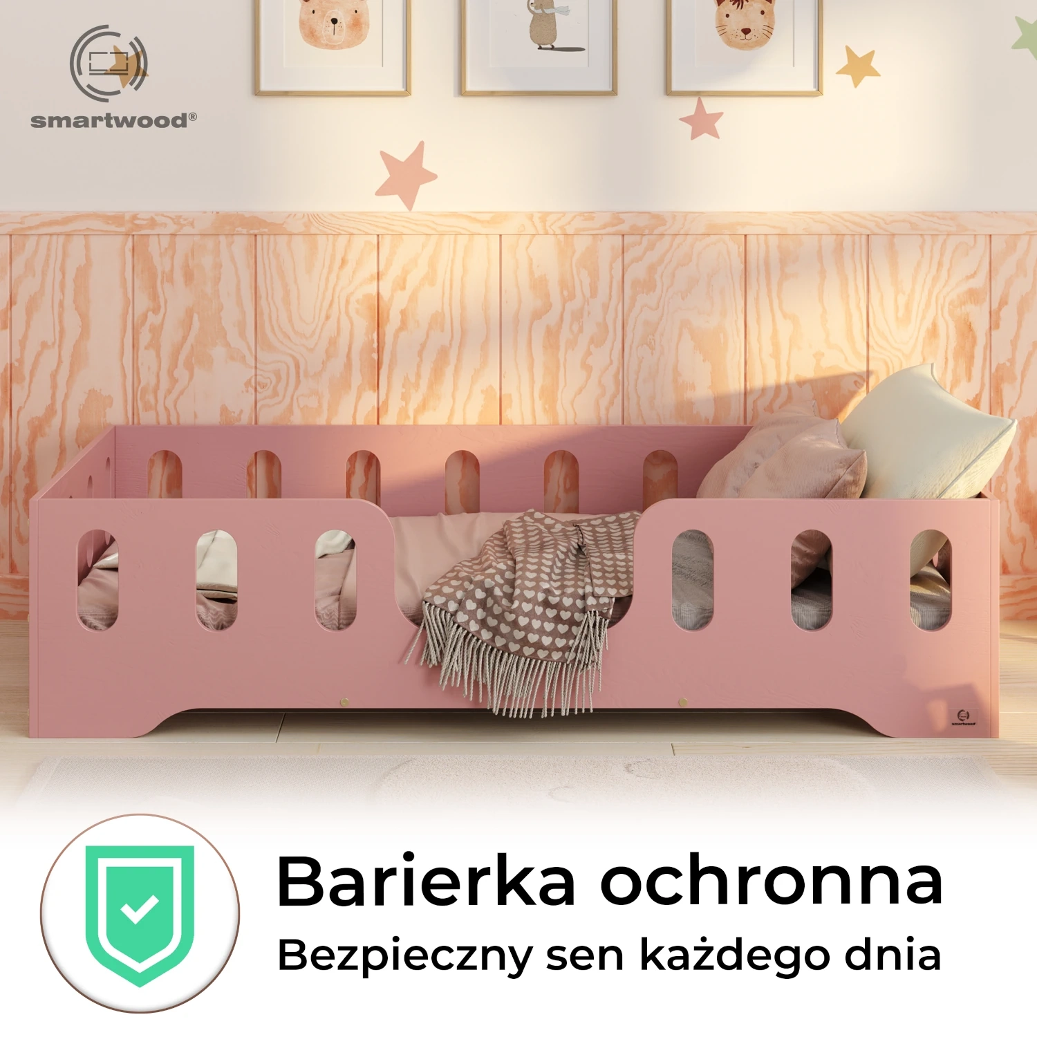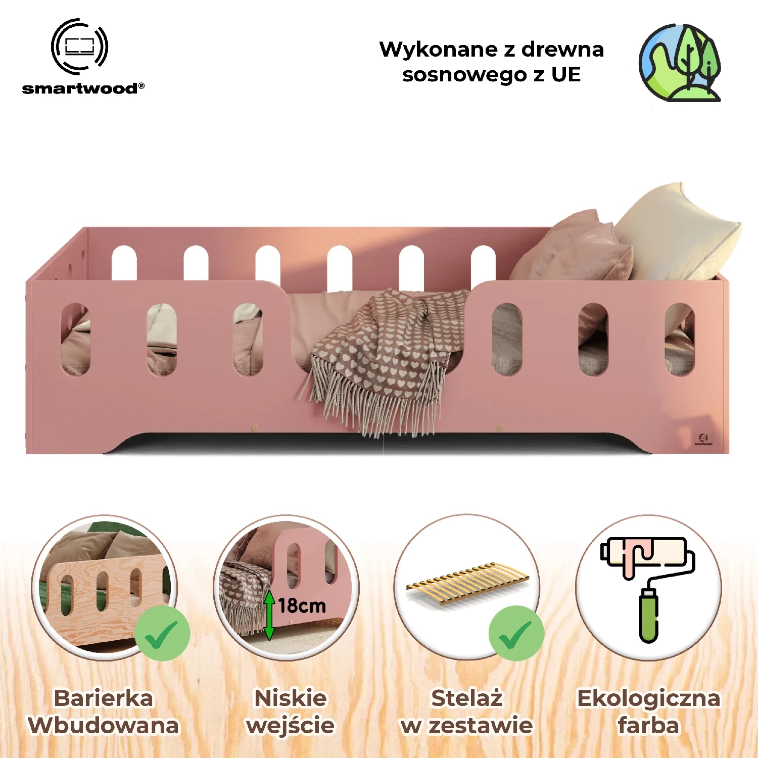 Łóżko pojedyncze dla dzieci z barierką i stelażem TILA 2 Montessori Drewniane