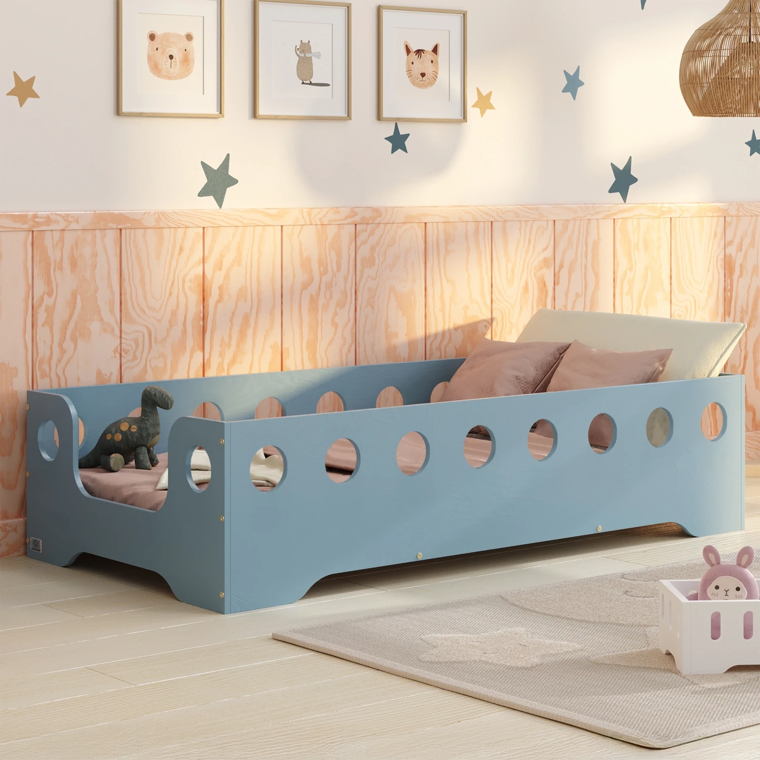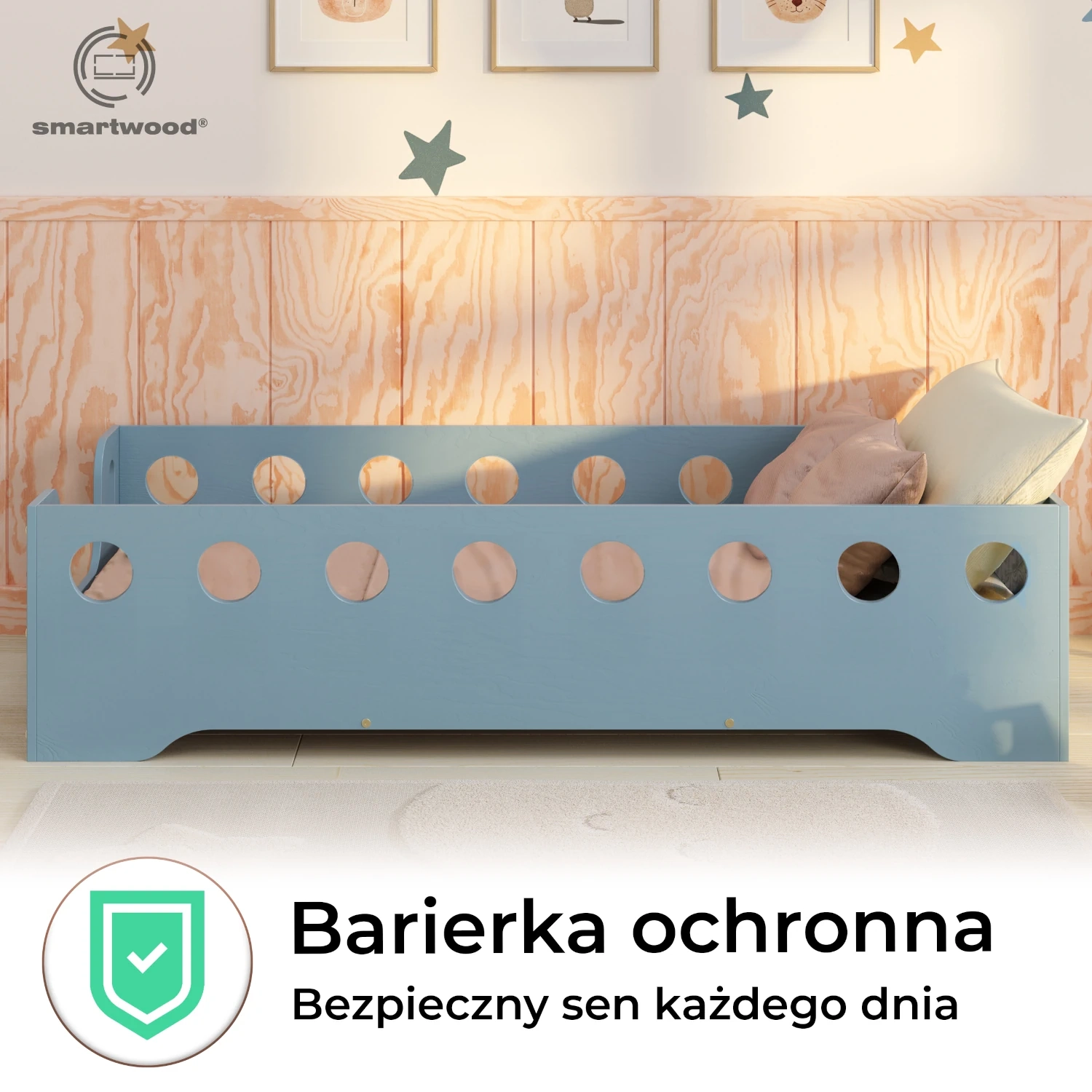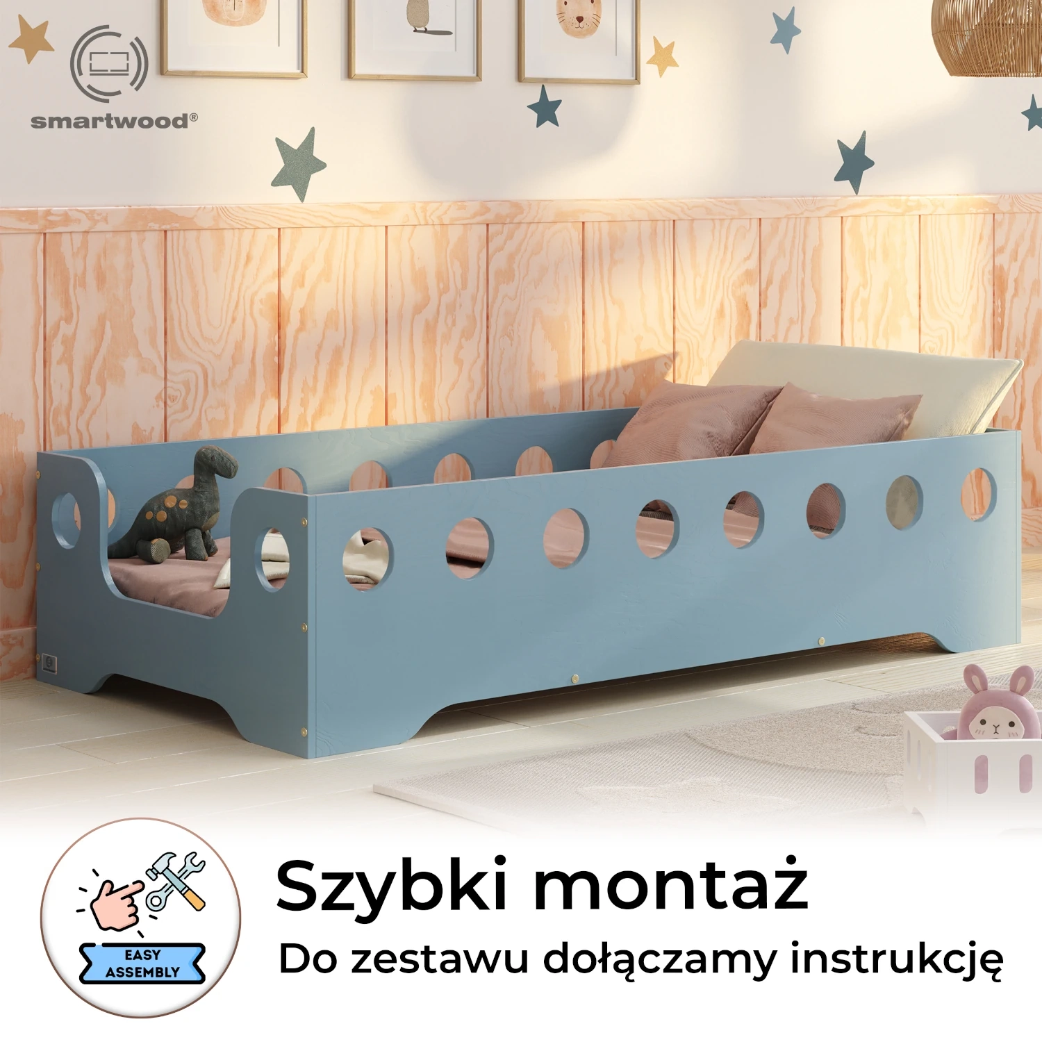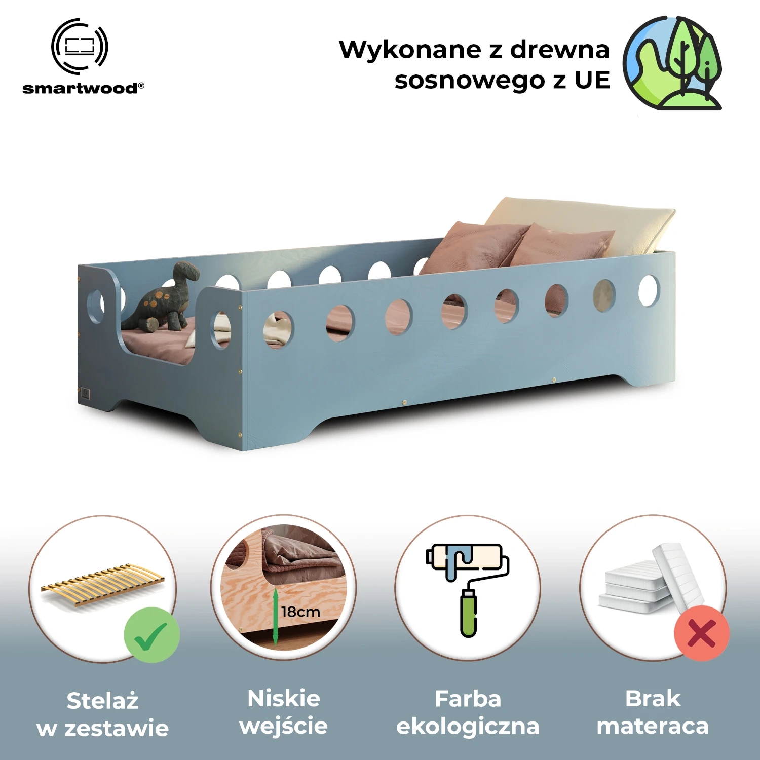 Łóżko pojedyncze dla dzieci z barierką i stelażem TILA 4 Montessori Drewniane