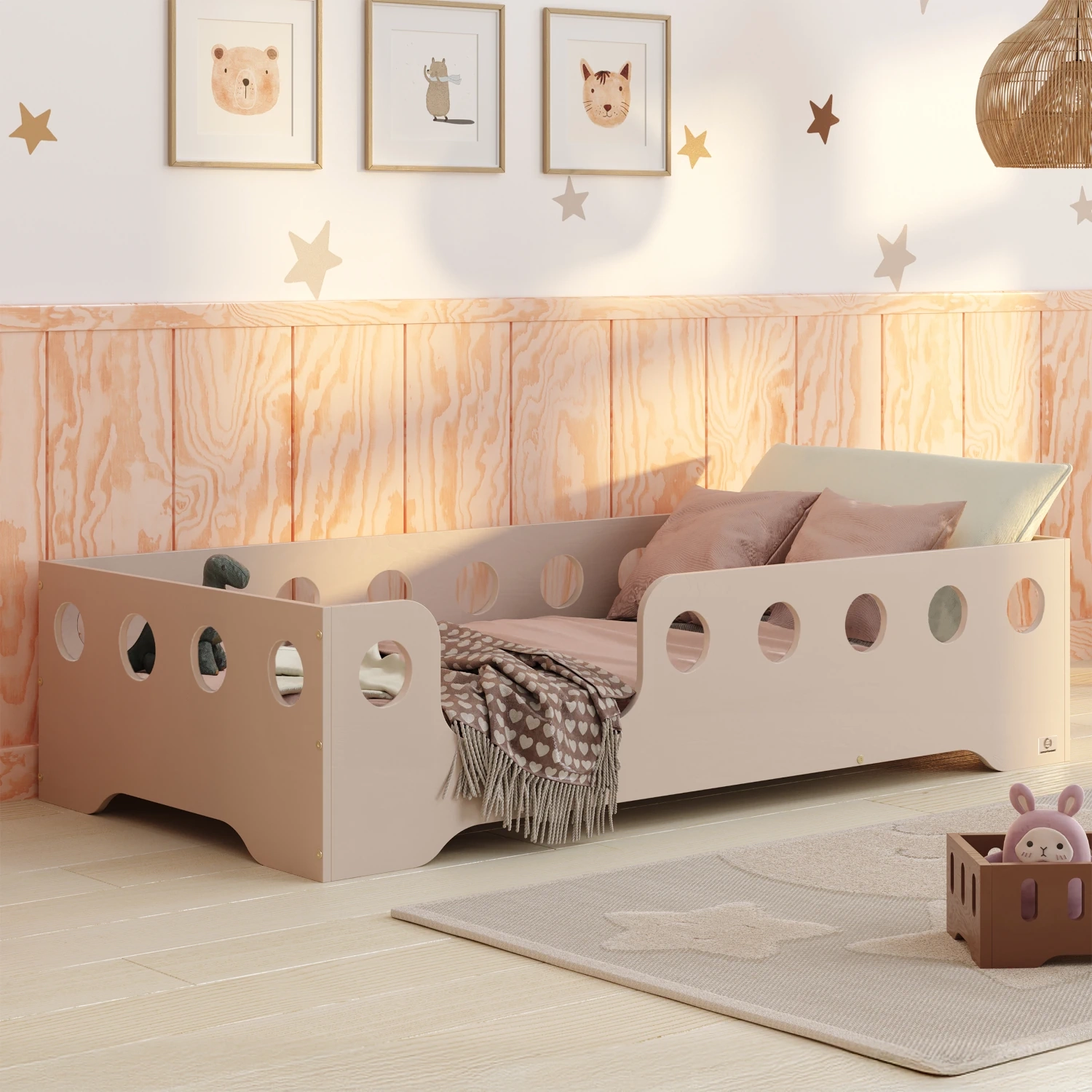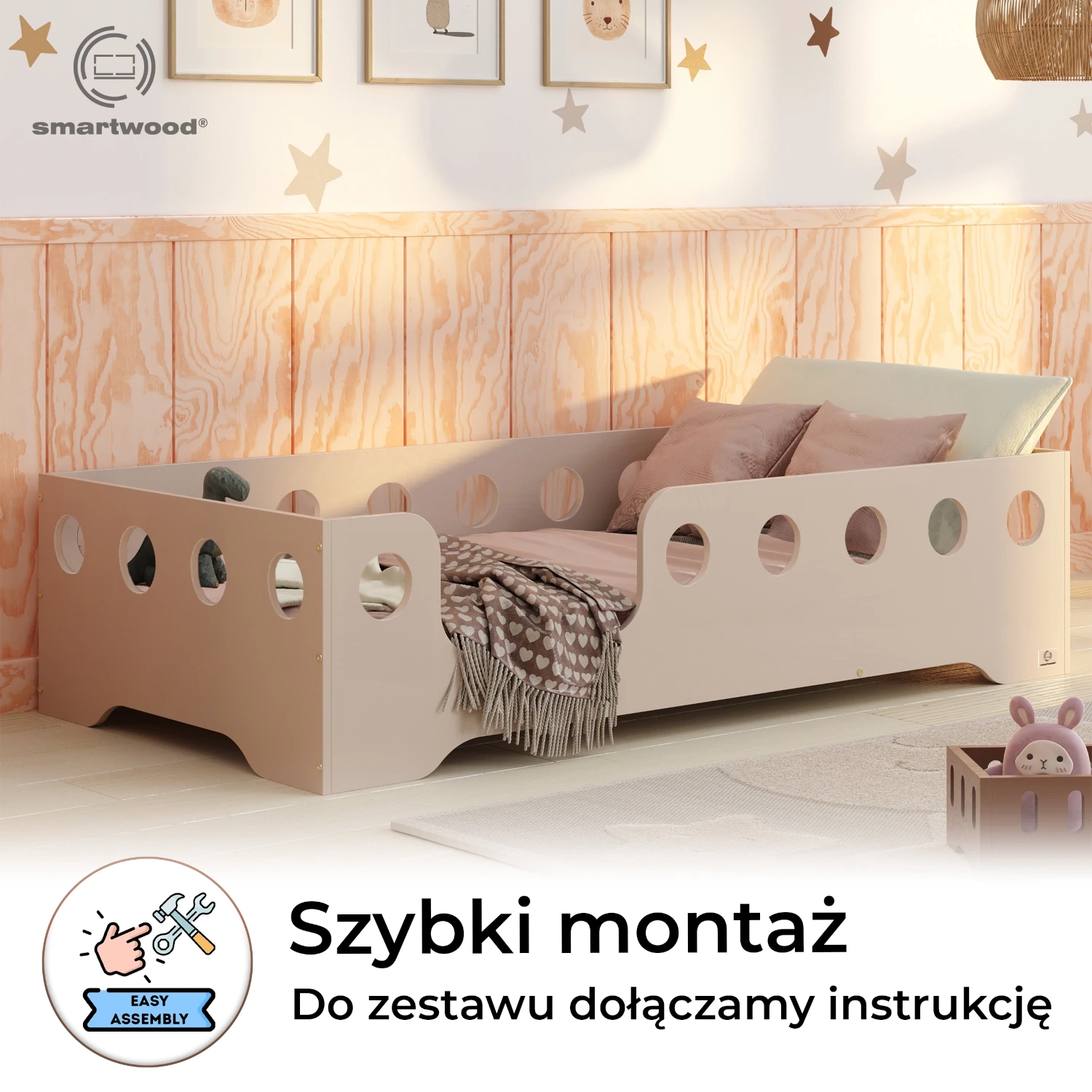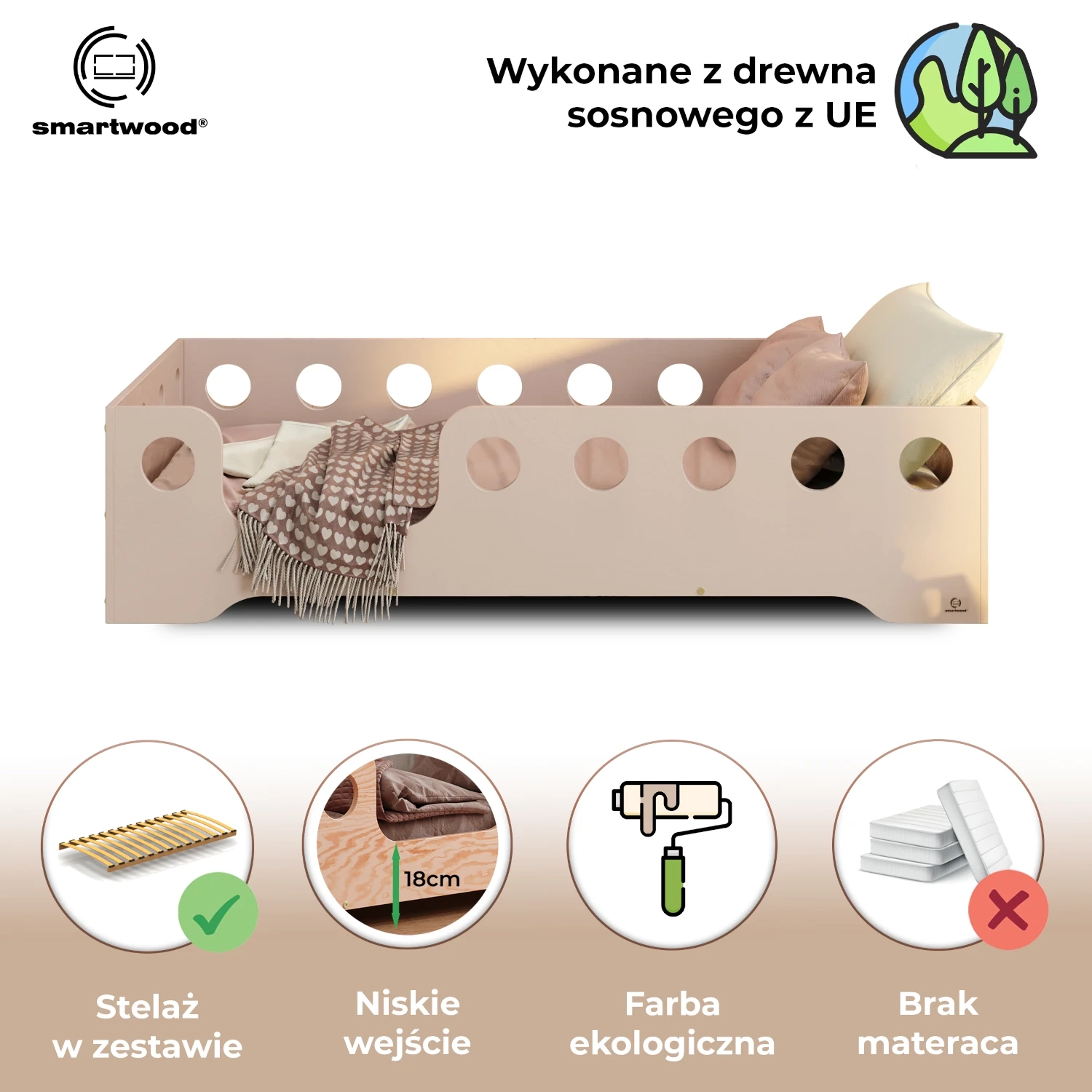 Łóżko pojedyncze dla dzieci z barierką i stelażem TILA 4 Montessori Drewniane