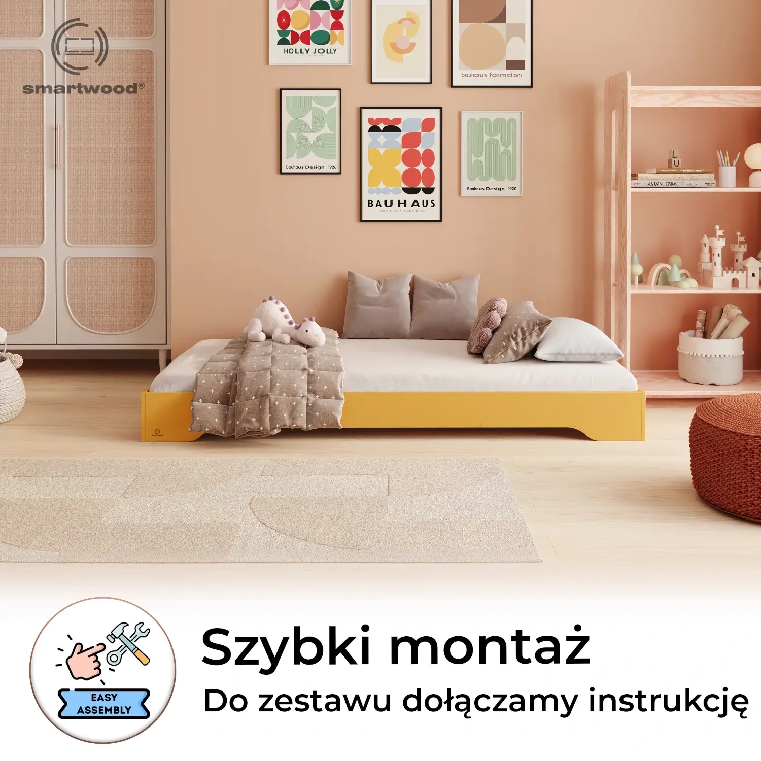 ✔ Dostępność na miarę dziecka – niska konstrukcja łóżka umożliwia swobodny dostęp, wspierając rozwój motoryczny, niezależność i poczucie samodzielności.