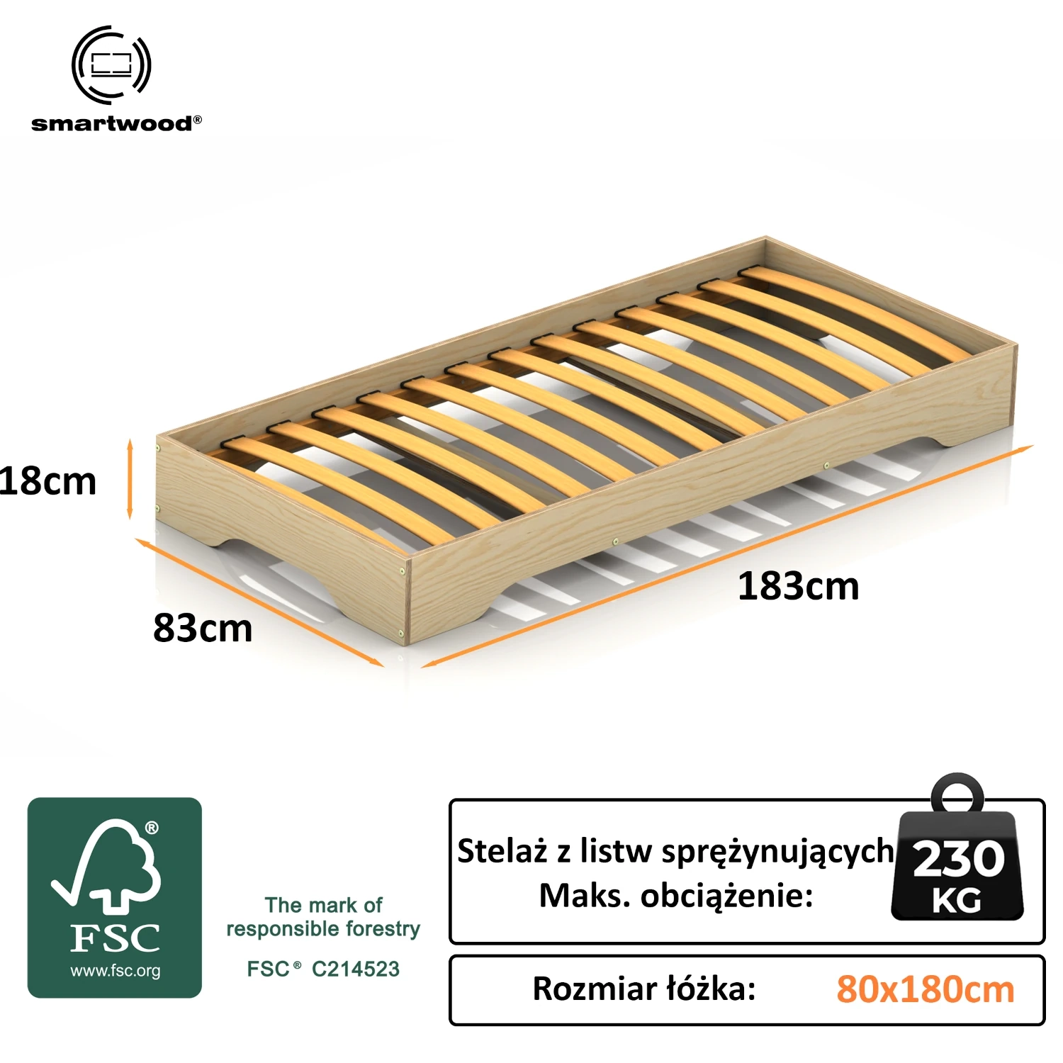 ✔ Wytrzymałość na lata – wysoka nośność sprawia, że łóżko z łatwością sprosta energii i kreatywności najmłodszych.