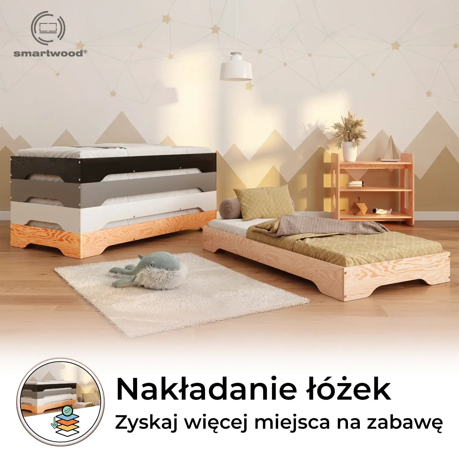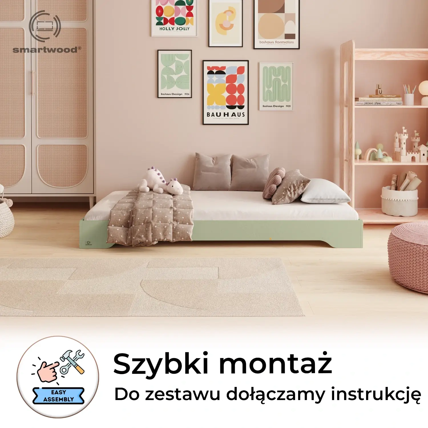 Łóżko pojedyncze dla dzieci podłogowe ze stelażem TILA 7 Montessori Drewniane