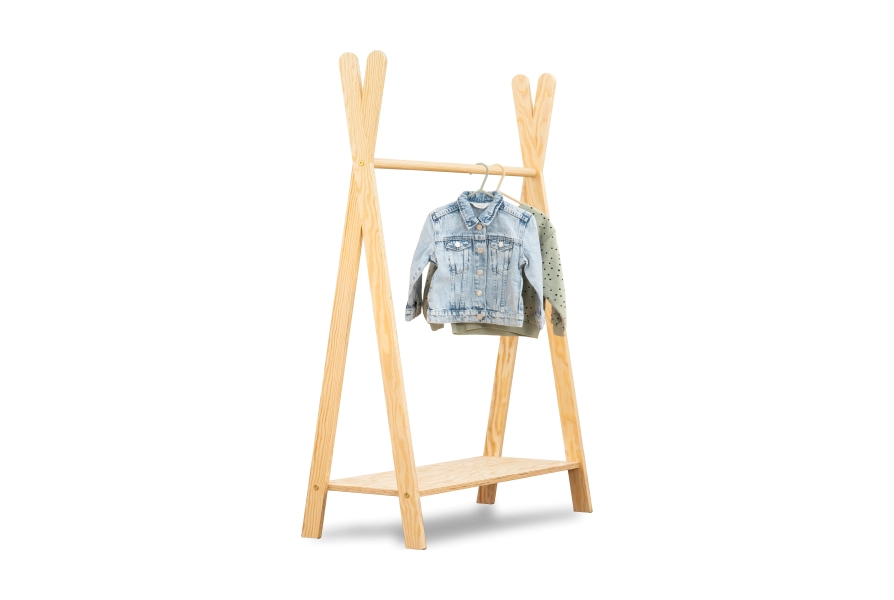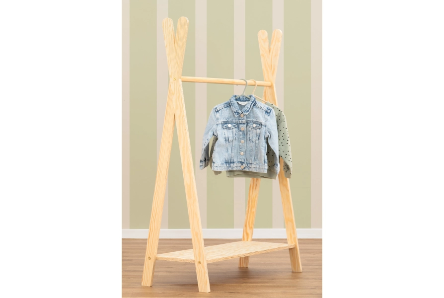 Wieszak na ubrania dla dzieci z półką na buty TIPI Montessori Drewniany