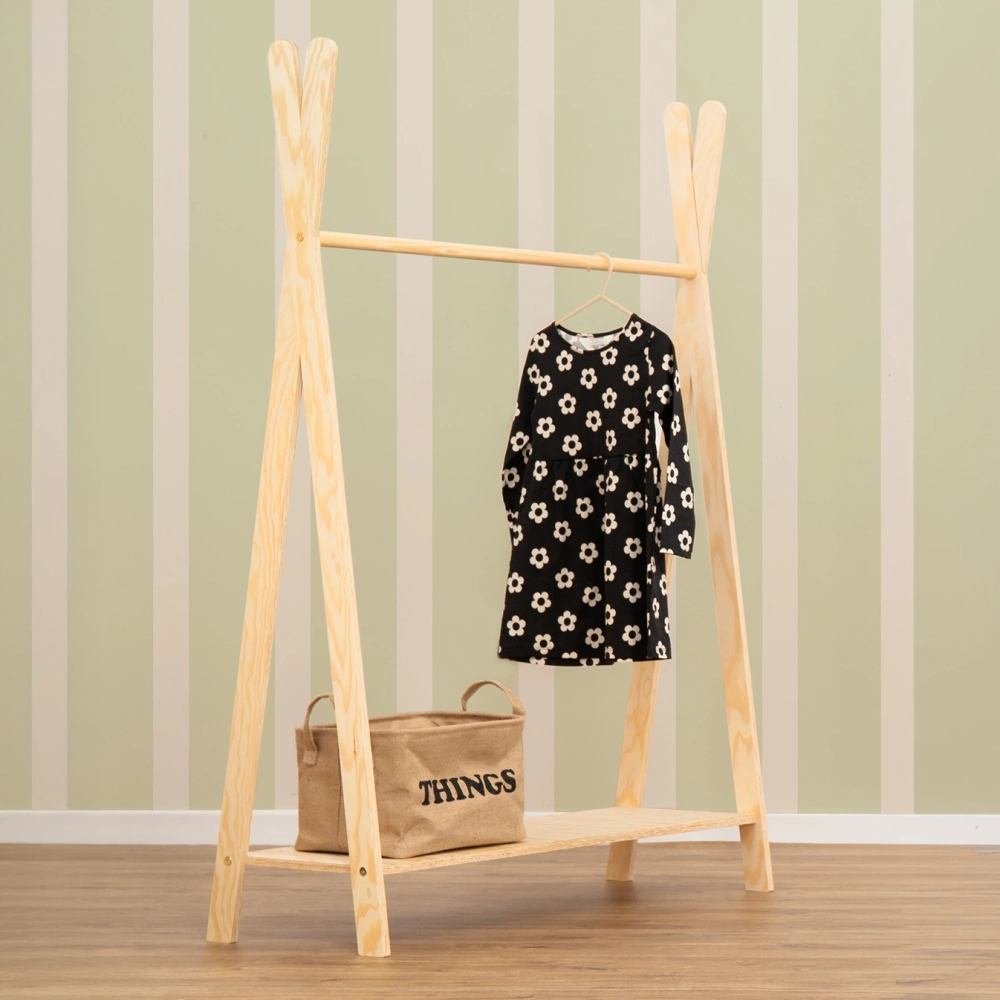 Wieszak na ubrania dla dzieci z półką na buty TIPI Montessori Drewniany