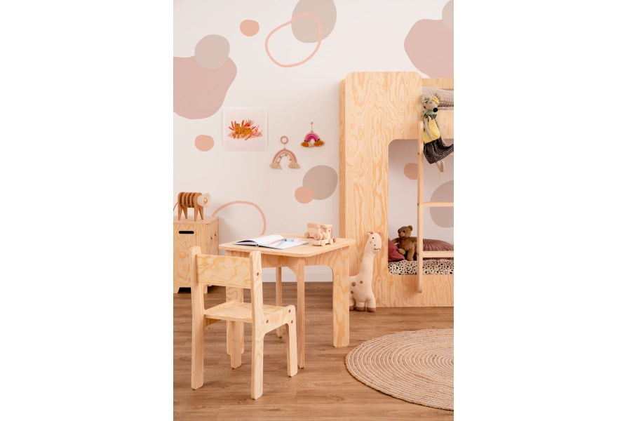 Stolik z krzesełkiem dla dziecka TAB+KR Montessori Drewniany